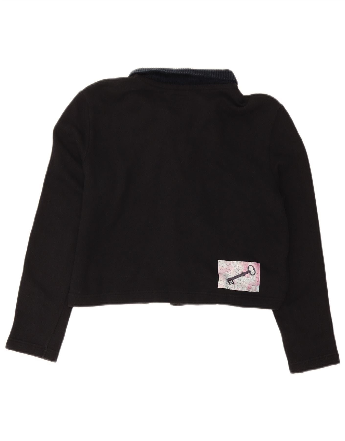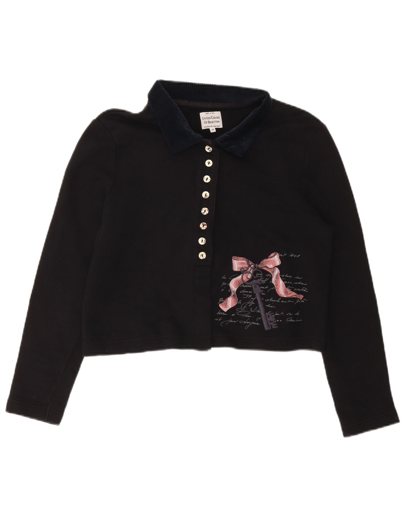 BENETTON Womens Oversized Graphic Crop Polo Shirt UK 10 Small Black