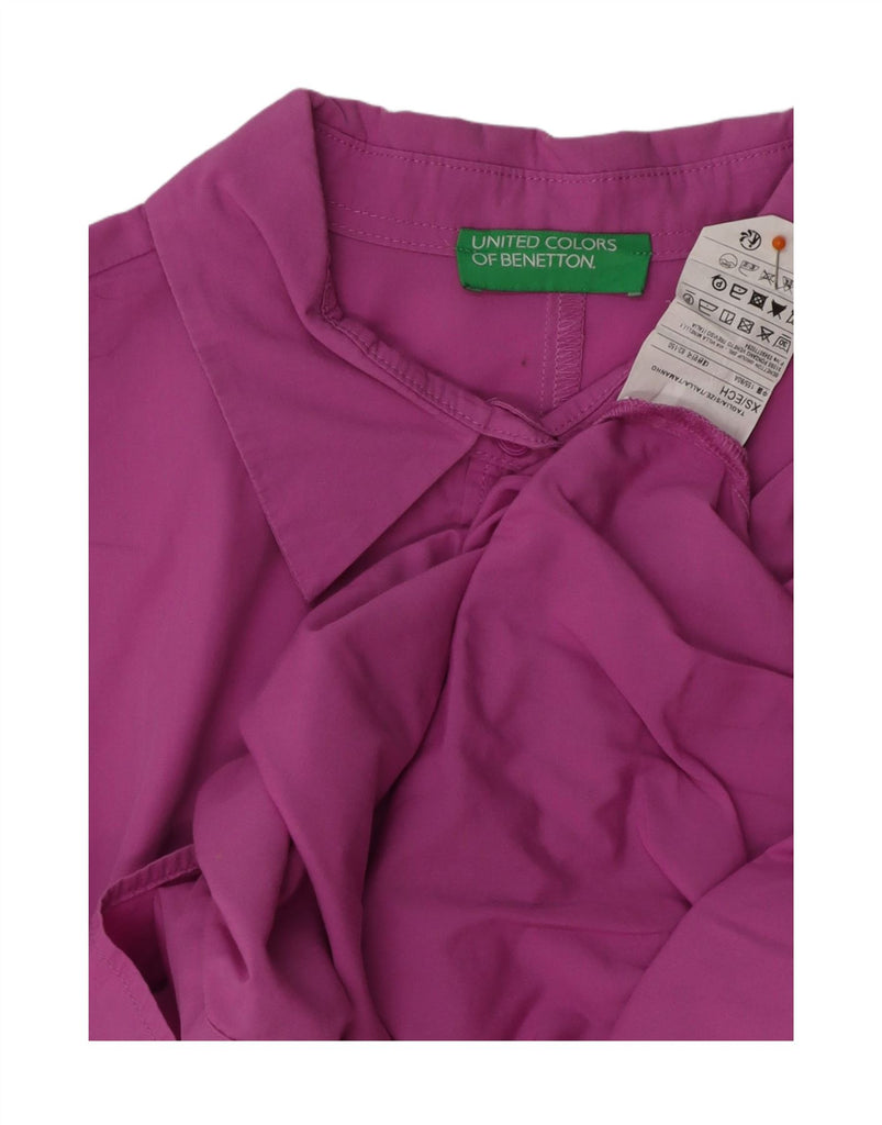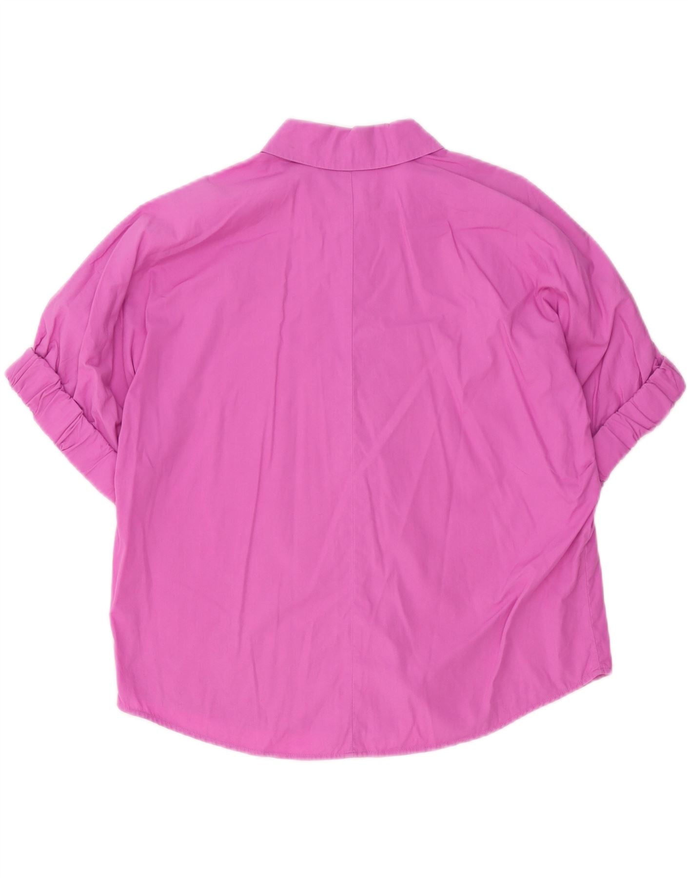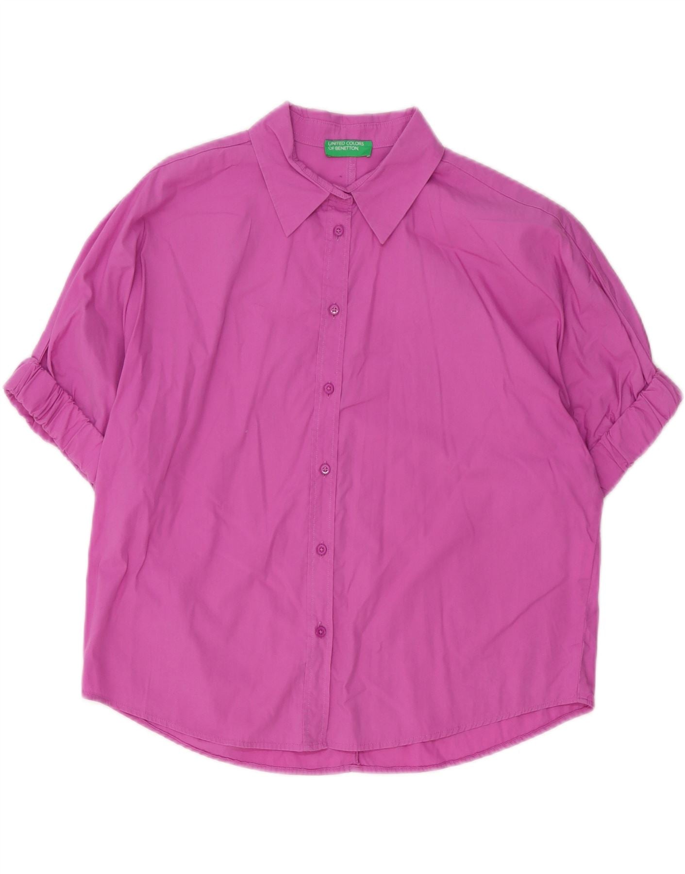BENETTON Womens Oversized Short Sleeve Shirt Blouse UK 6 XS Pink Cotton