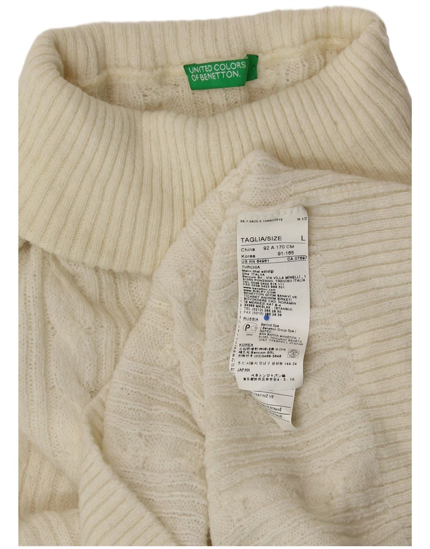 BENETTON Womens Roll Neck Jumper Sweater UK 16 Large Off White Acrylic