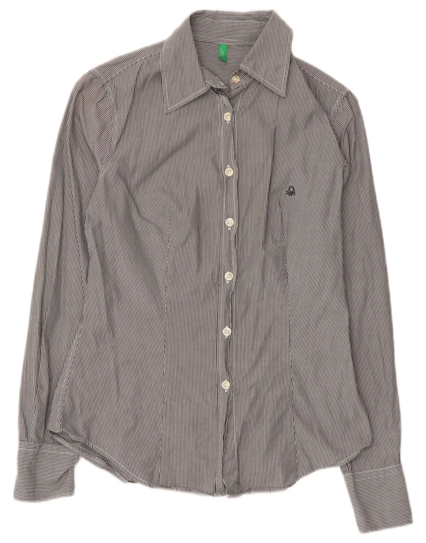 BENETTON Womens Shirt UK 8 Small Grey Pinstripe