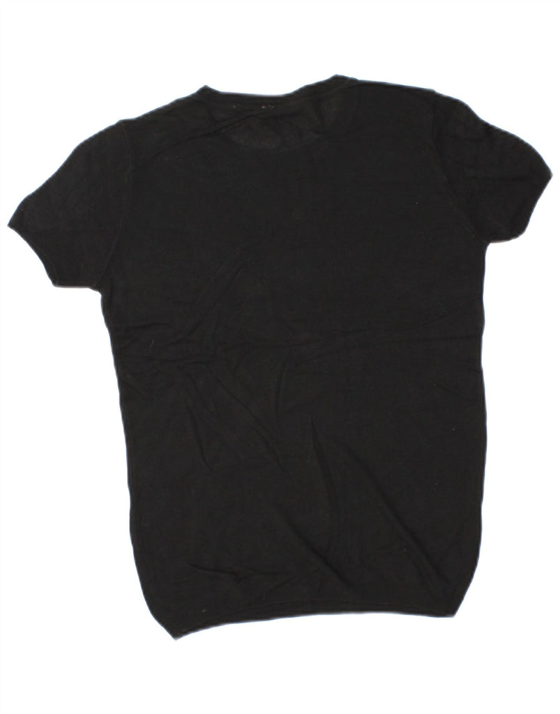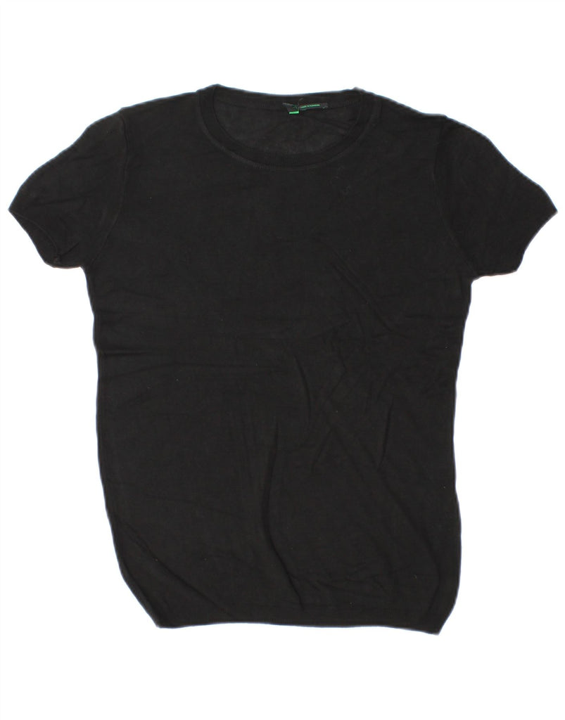 BENETTON Womens Short Sleeve Crew Neck Jumper Sweater UK 10 Small Black