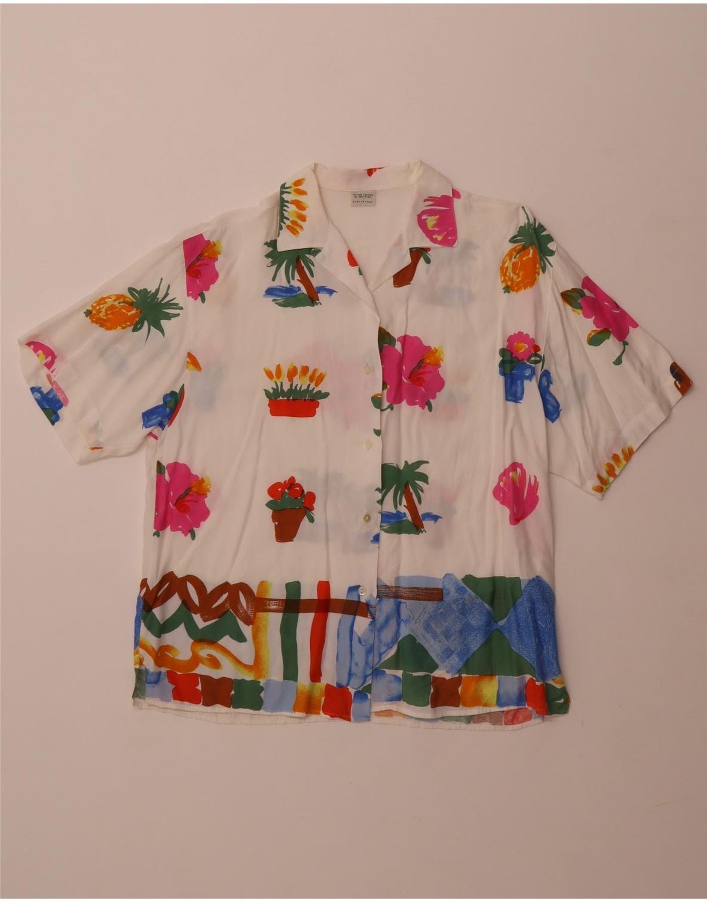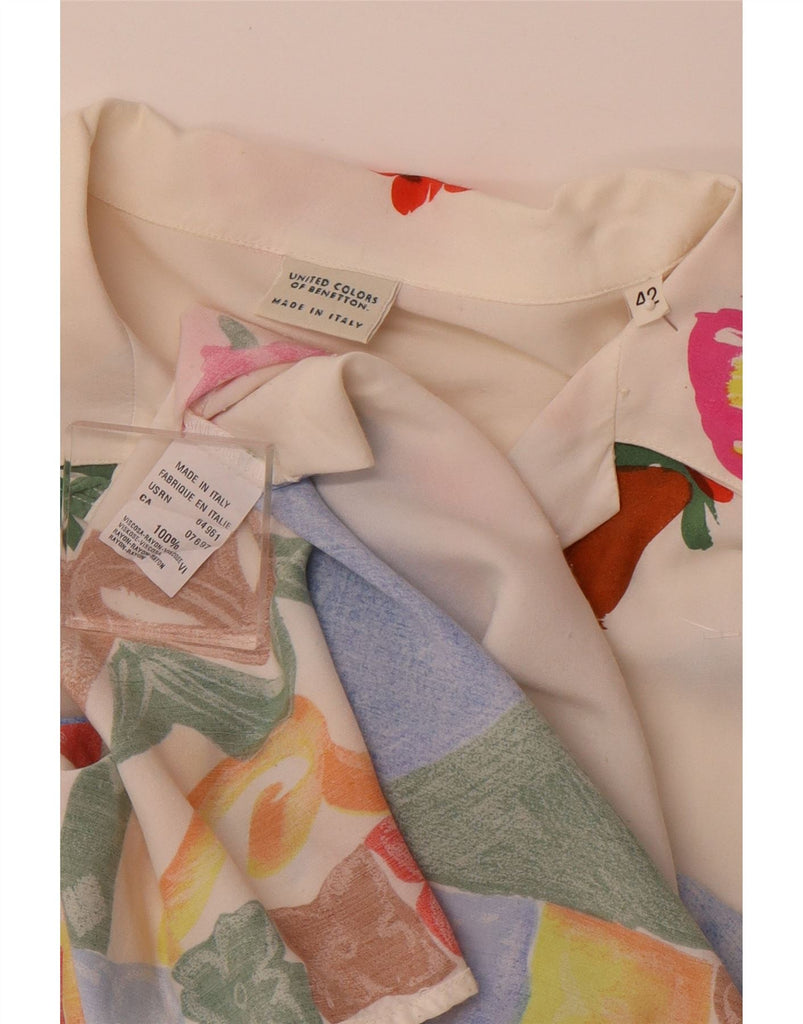 BENETTON Womens Short Sleeve Shirt Blouse IT 42 Medium White Floral