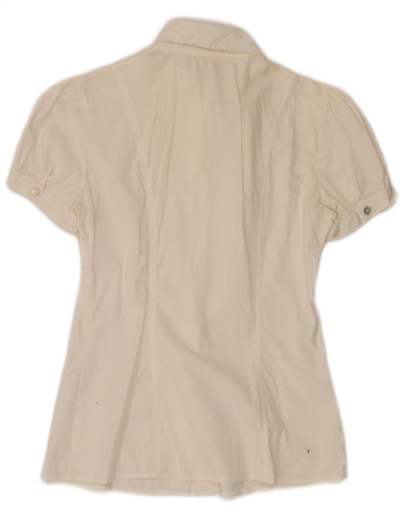 BENETTON Womens Short Sleeve Shirt Blouse UK 8 Small Off White