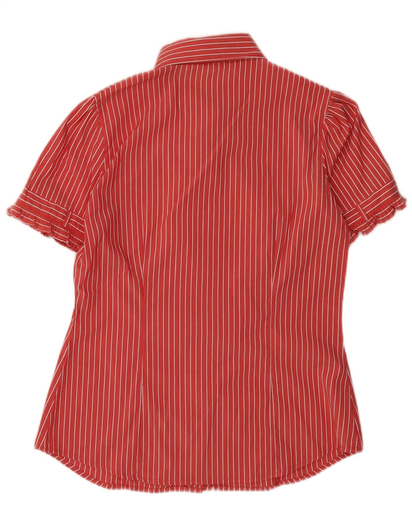 BENETTON Womens Short Sleeve Shirt UK 14 Medium Red Pinstripe