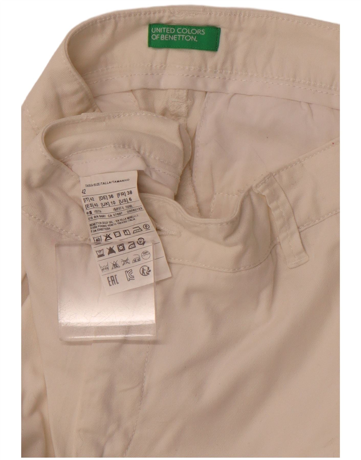 BENETTON Womens Straight Chino Trousers UK 10 Small W28 L28 White Cotton
