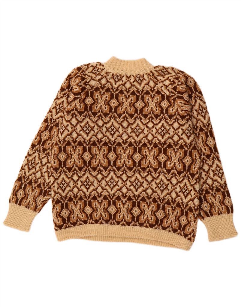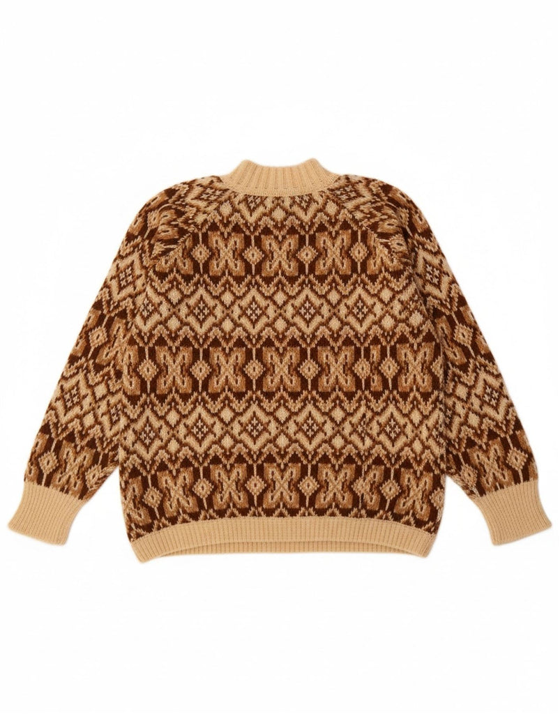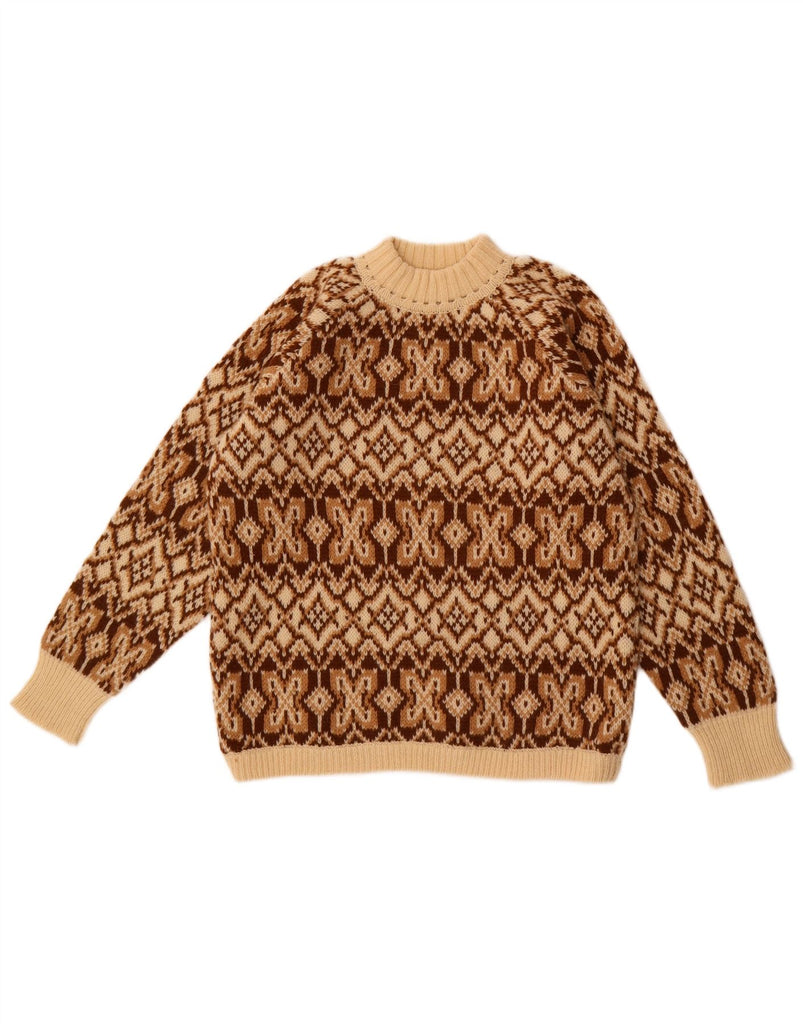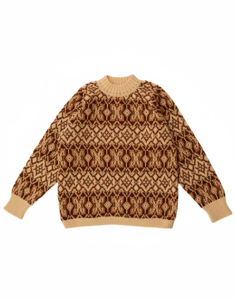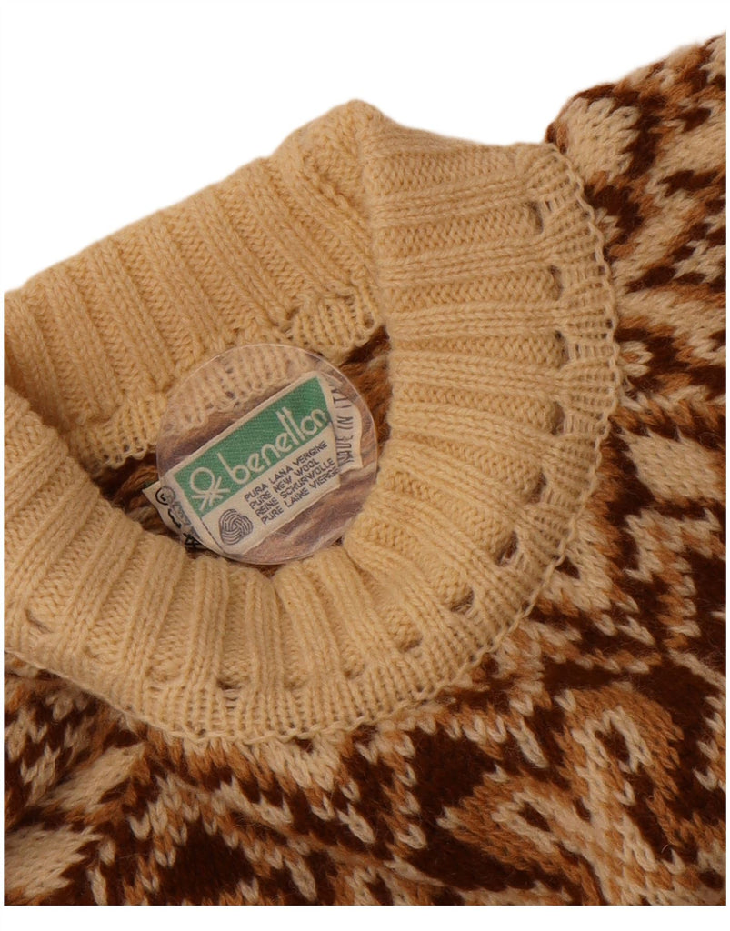 BENETTON Womens Turtle Neck Jumper Sweater UK 16 Large Beige Fair Isle