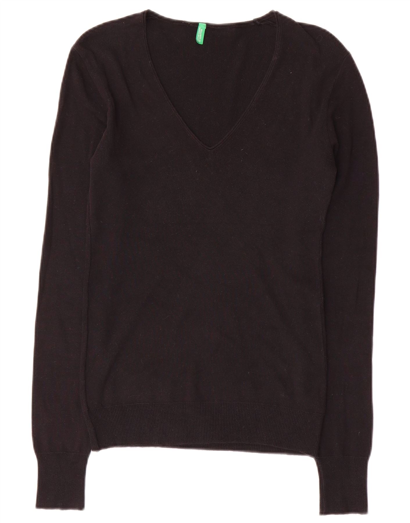 BENETTON Womens V-Neck Jumper Sweater UK 10 Small Black