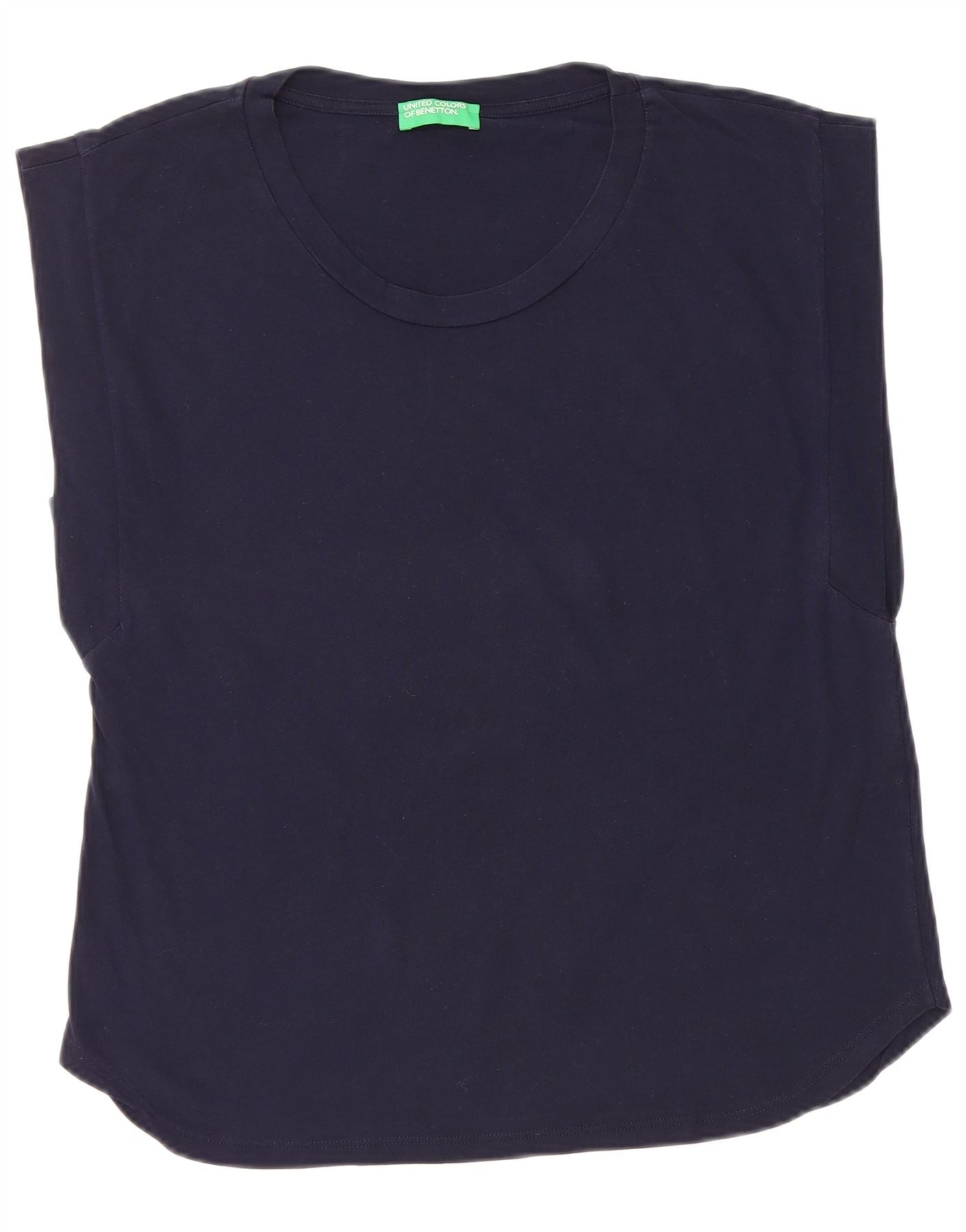 Benetton Womens Vest Top UK 12 Medium Navy Blue Cotton