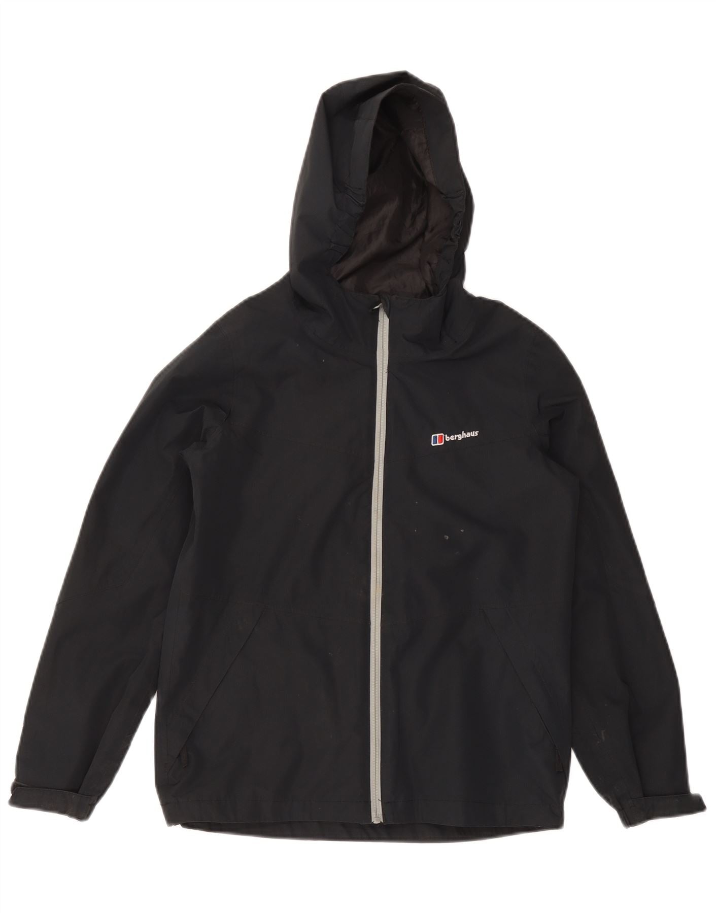 BERGHAUS Boys Hooded Rain Jacket 11-12 Years Navy Blue Polyester