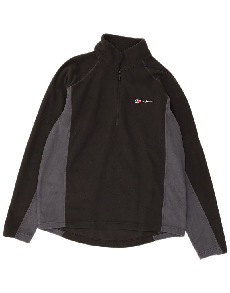 BERGHAUS Mens Zip Neck Fleece Jumper Large Black Colourblock Polyester
