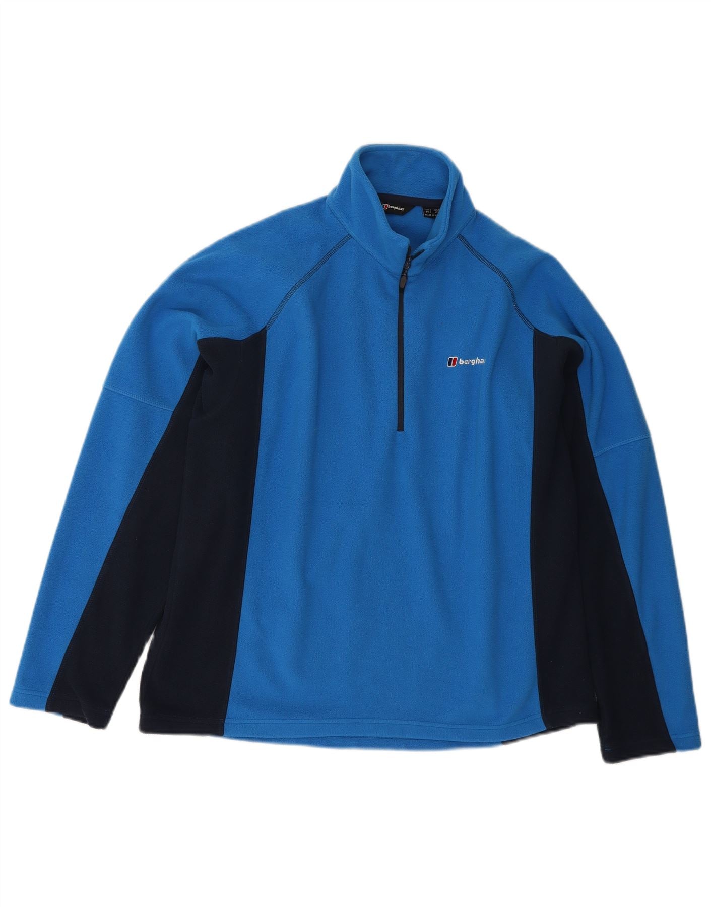 BERGHAUS Mens Zip Neck Fleece Jumper Large Blue Colourblock Polyester
