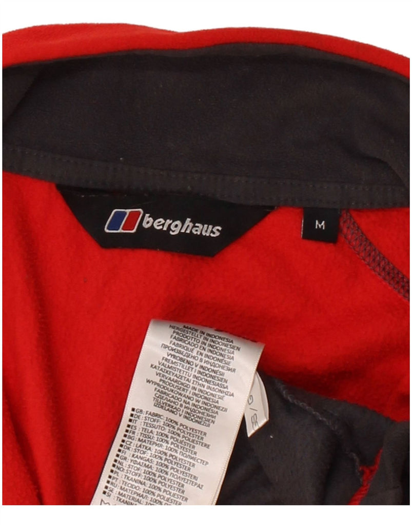 BERGHAUS Mens Zip Neck Fleece Jumper Medium Red Colourblock Polyester