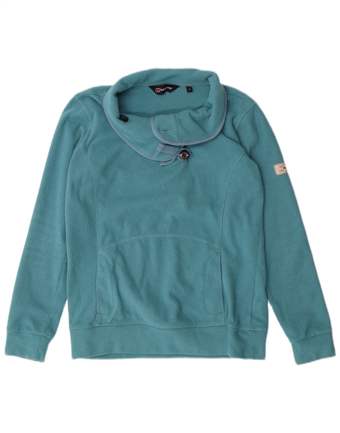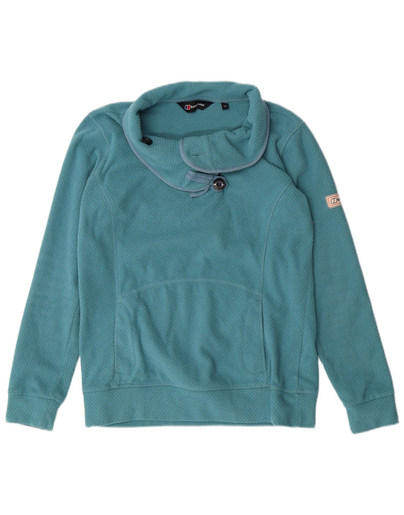 BERGHAUS Womens Button Neck Sweatshirt Jumper UK 10 Small Turquoise