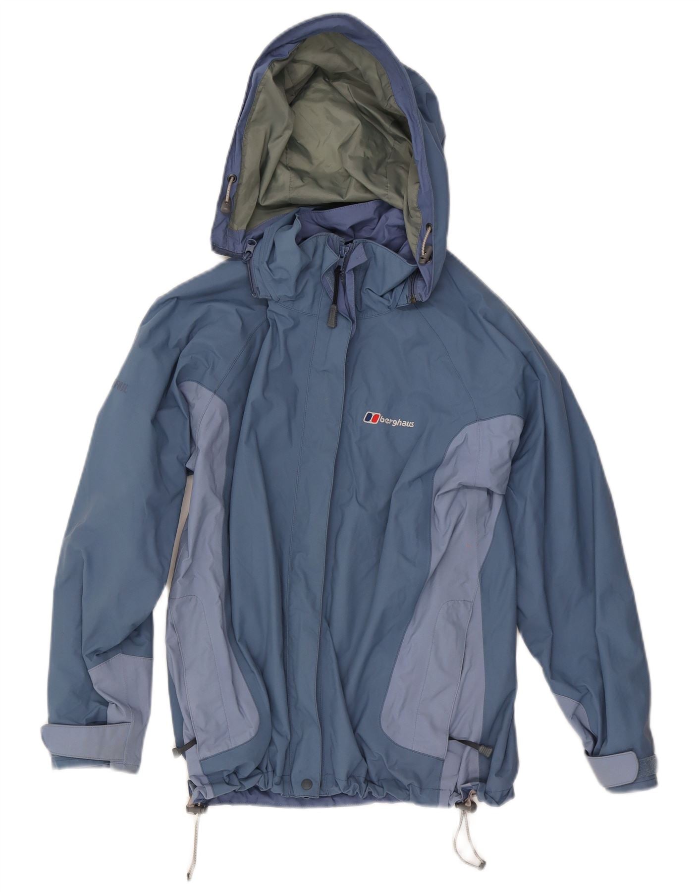 Home > Vintage Berghaus Clothing > Women's > Jackets > BERGHAUS Womens Hooded Rain Jacket UK 10 Small Blue Colourblock Nylon