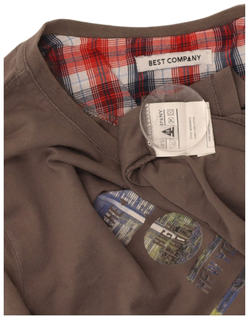 BEST COMPANY Boys Graphic Top Long Sleeve 13-14 Years Grey Cotton
