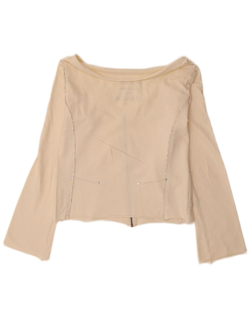 BEST COMPANY Womens Crop Cardigan Top UK 14 Large Off White Cotton