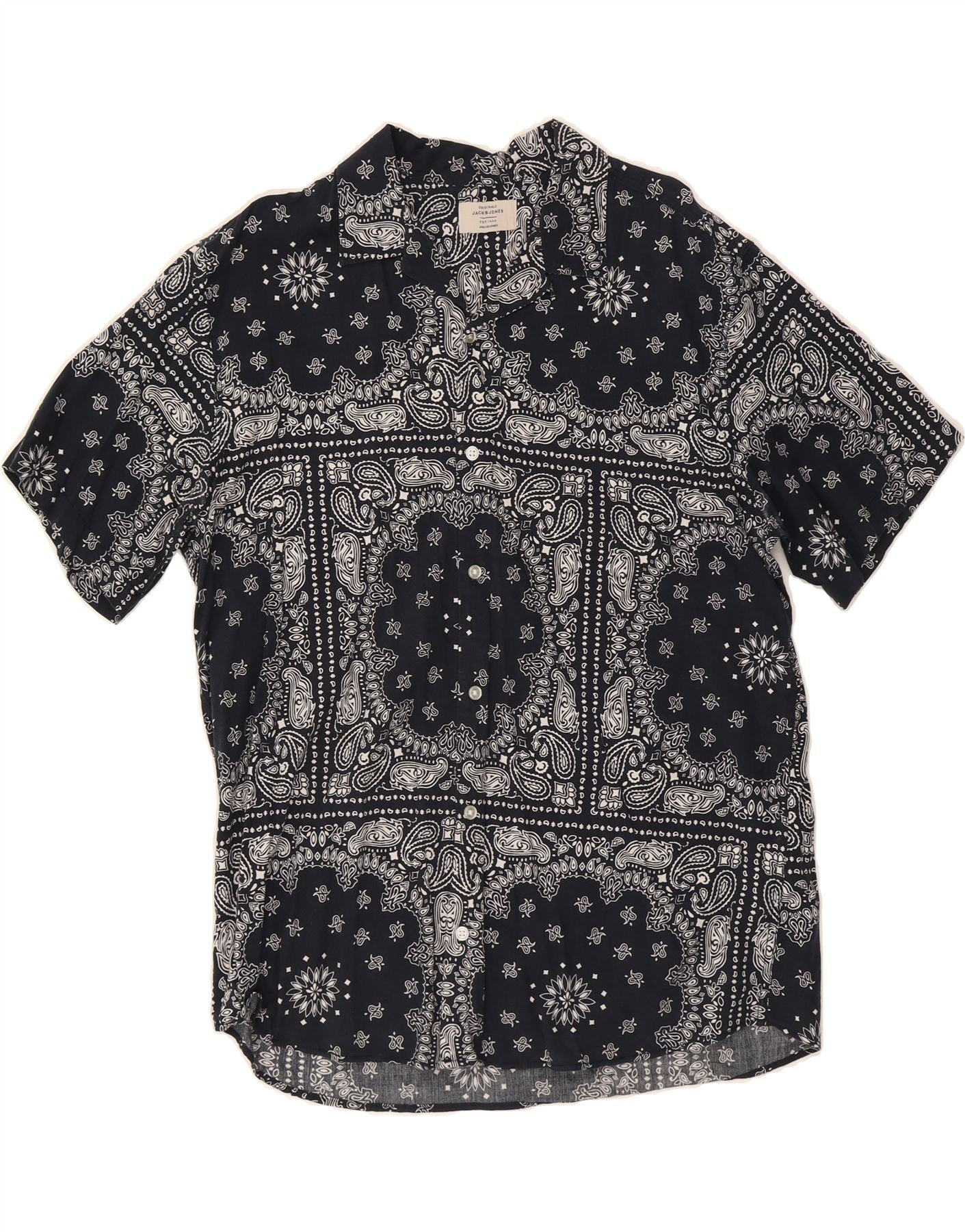 BETTY JACKSON Mens Short Sleeve Shirt Large Navy Blue Floral Cotton