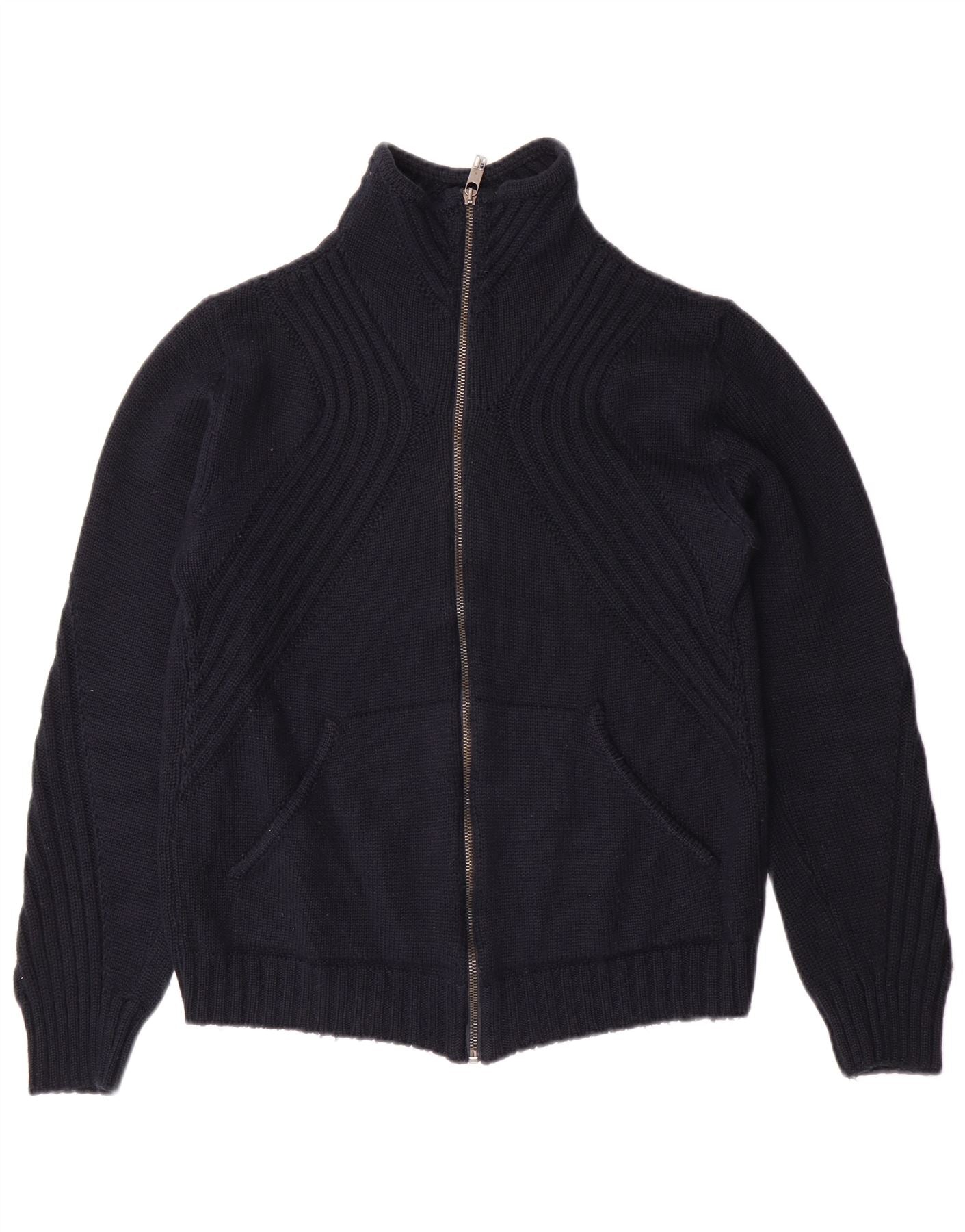 BIKKEMBERGS Womens Oversized Cardigan Sweater UK 6 XS Navy Blue Wool