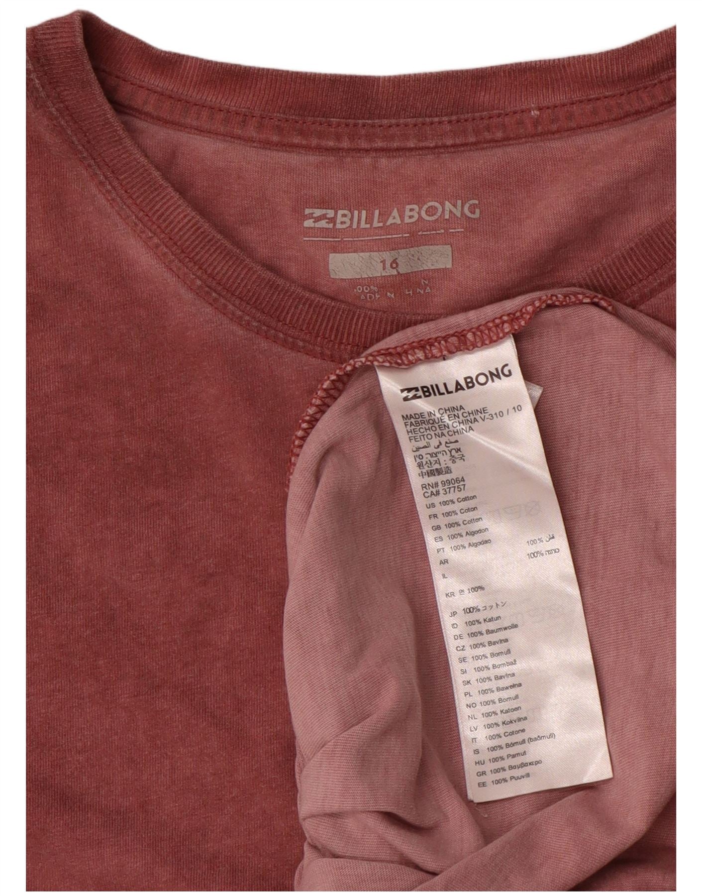 BILLABONG Boys Graphic T-Shirt Top 15-16 Years Burgundy Cotton