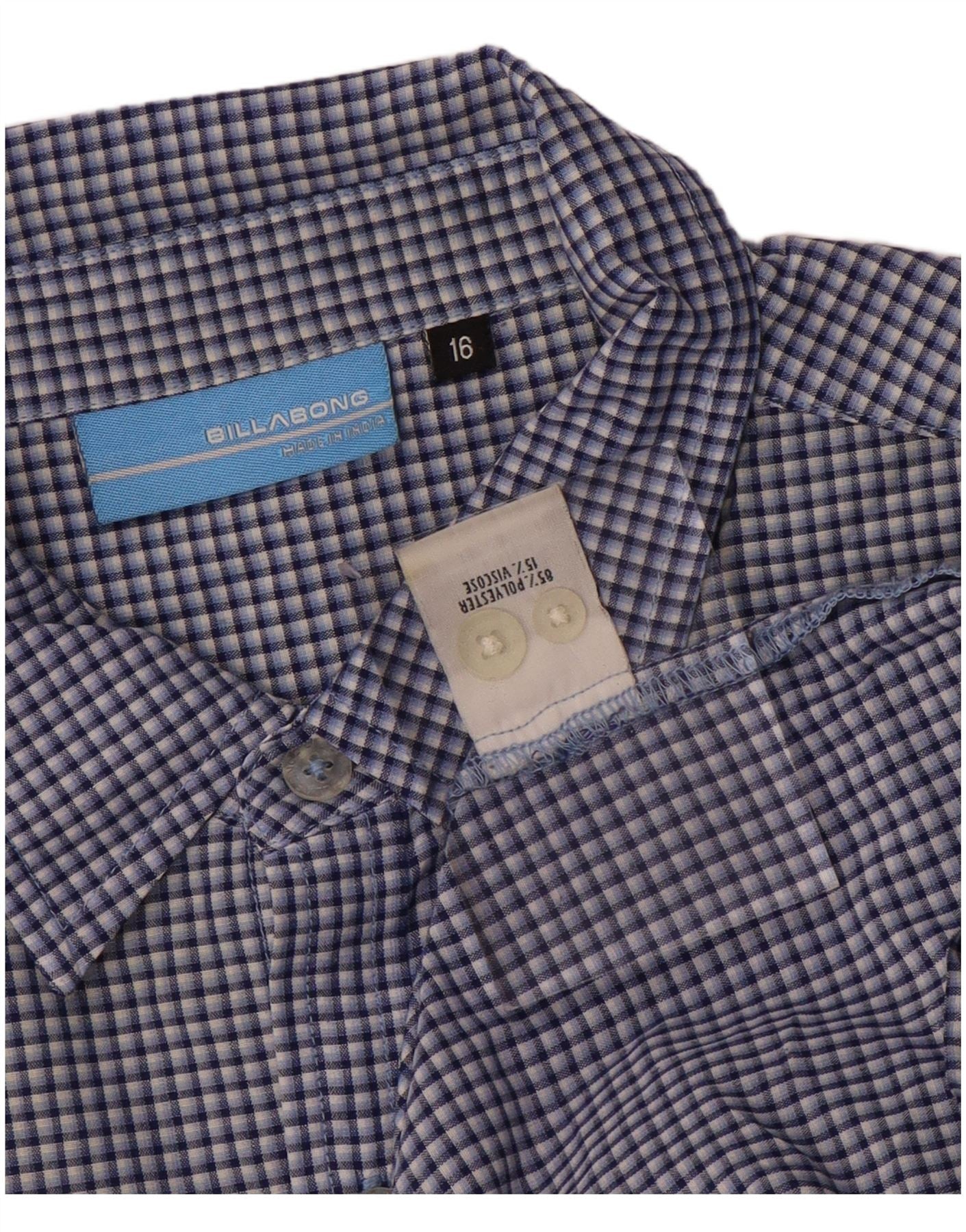 BILLABONG Boys Short Sleeve Shirt 15-16 Years Navy Blue Check Polyester