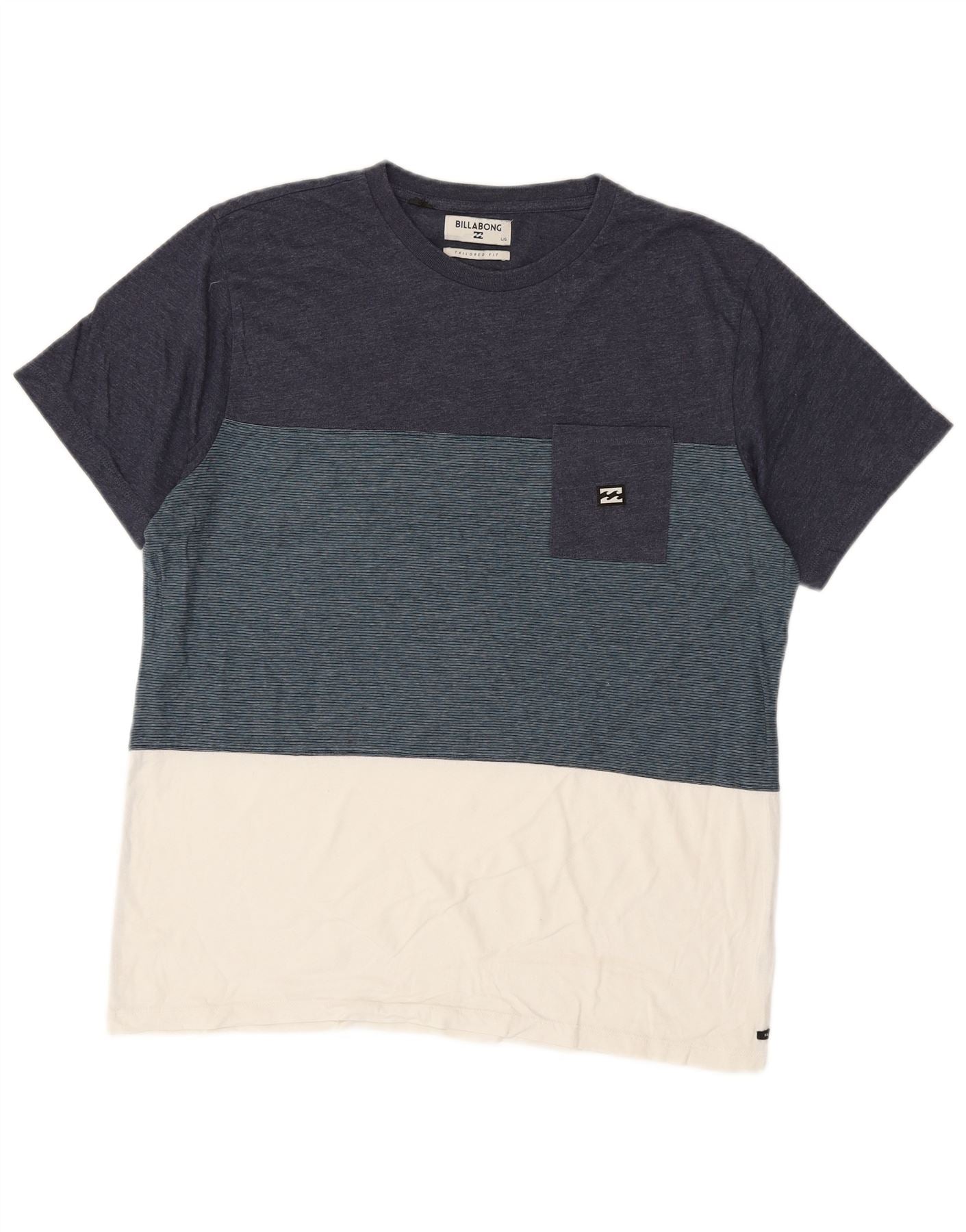 BILLABONG Mens Tailored Fit T-Shirt Top Large Navy Blue Colourblock Cotton
