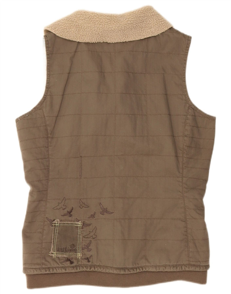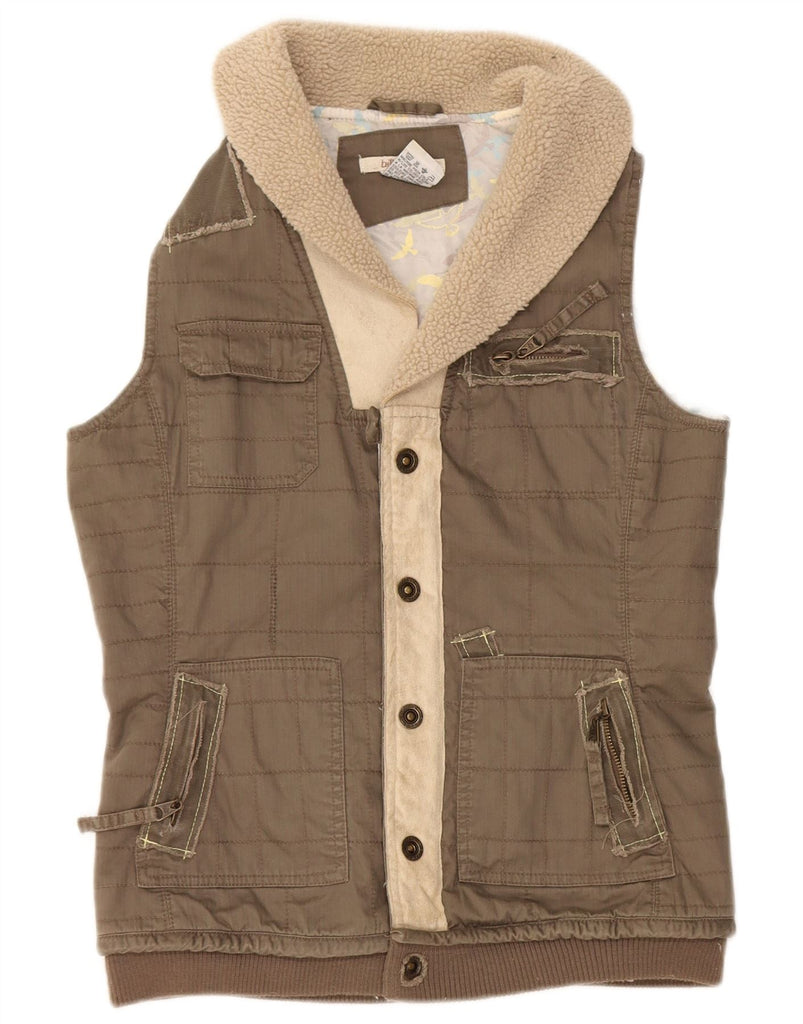 - AI Description: This Billabong womens waistcoat presents a sophisticated look in khaki woven cotton. It features a smart collared neckline and a neat button-up front. The sleeveless design ensures versatile layering. A quilted polyester lining provides warmth and subtle texture. Functional pockets add practicality. This regular fit waistcoat is fully lined and includes an adjustable back, ensuring a comfortable, tailored silhouette.