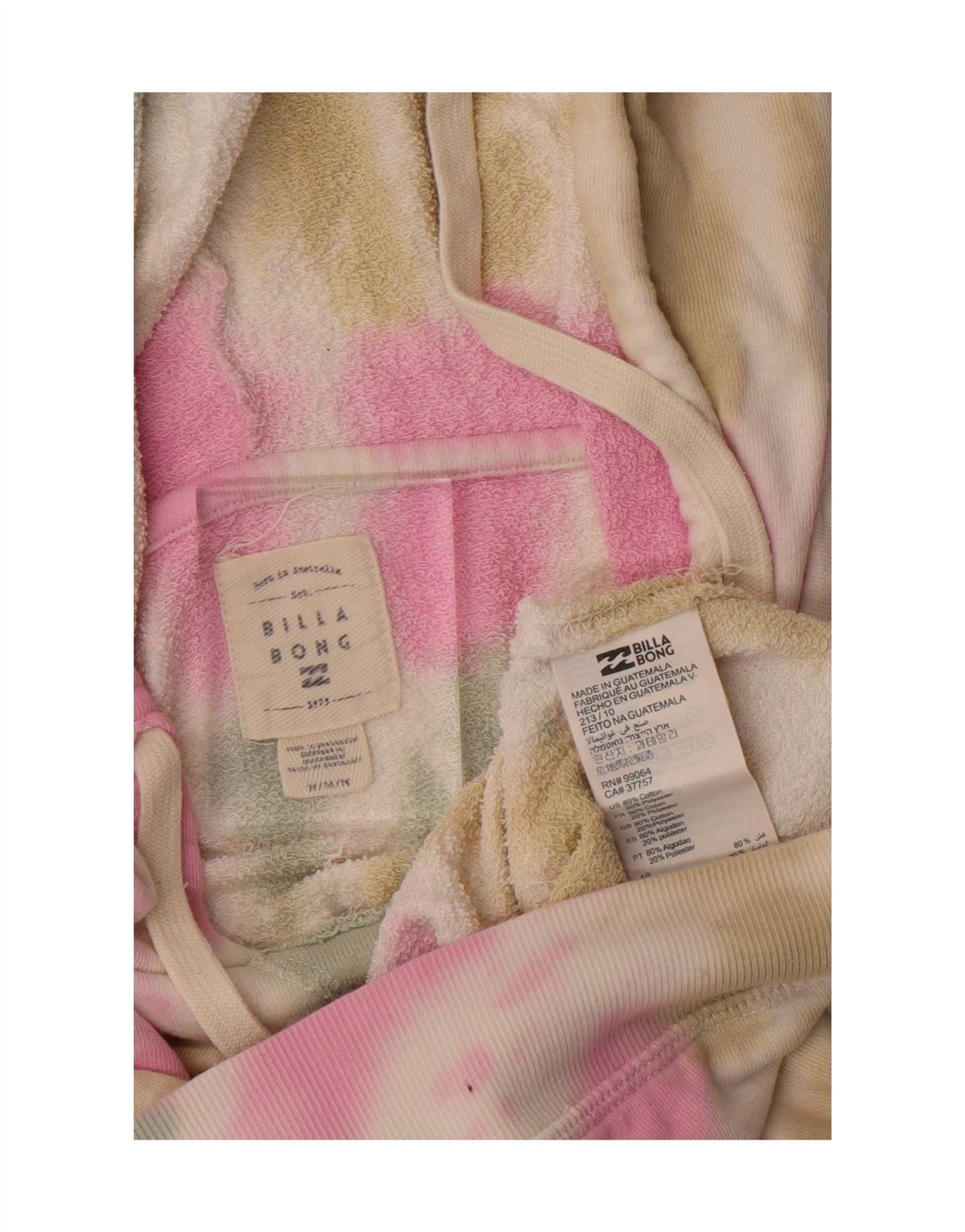 - AI Description: This Billabong women’s hoodie jumper features a tie-dye pattern on soft fleece. A hooded neckline and long sleeves add to its cosy, casual style. The pullover closure and regular fit ensure comfortable wear. The multicoloured design brings a vibrant, hippie-chic vibe. Perfect for relaxed, everyday wear.