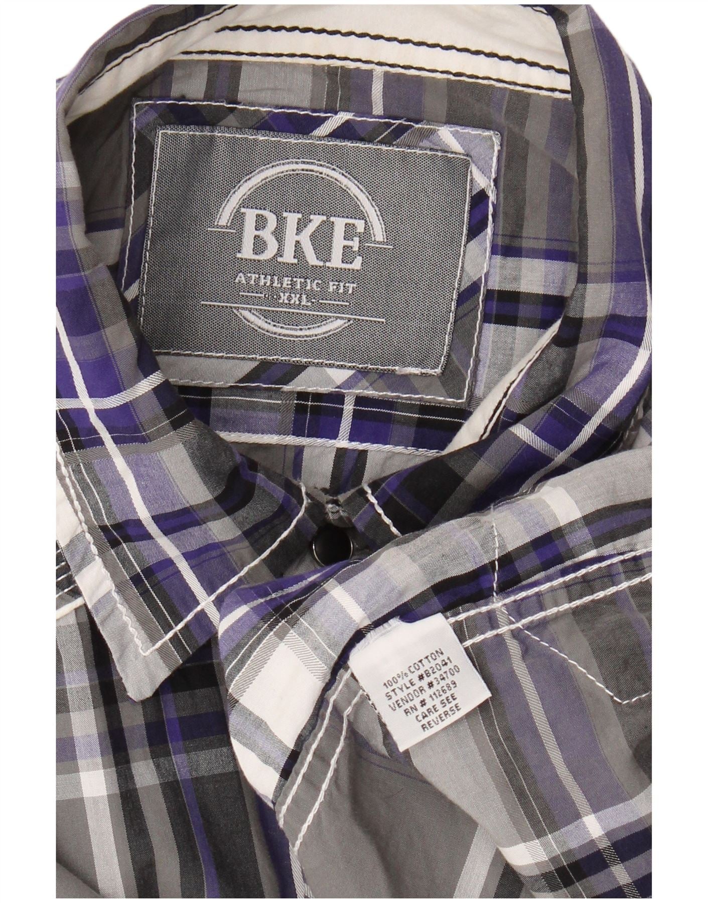 BKE Mens Athletic Fit Flannel Shirt 2XL Grey Check Cotton