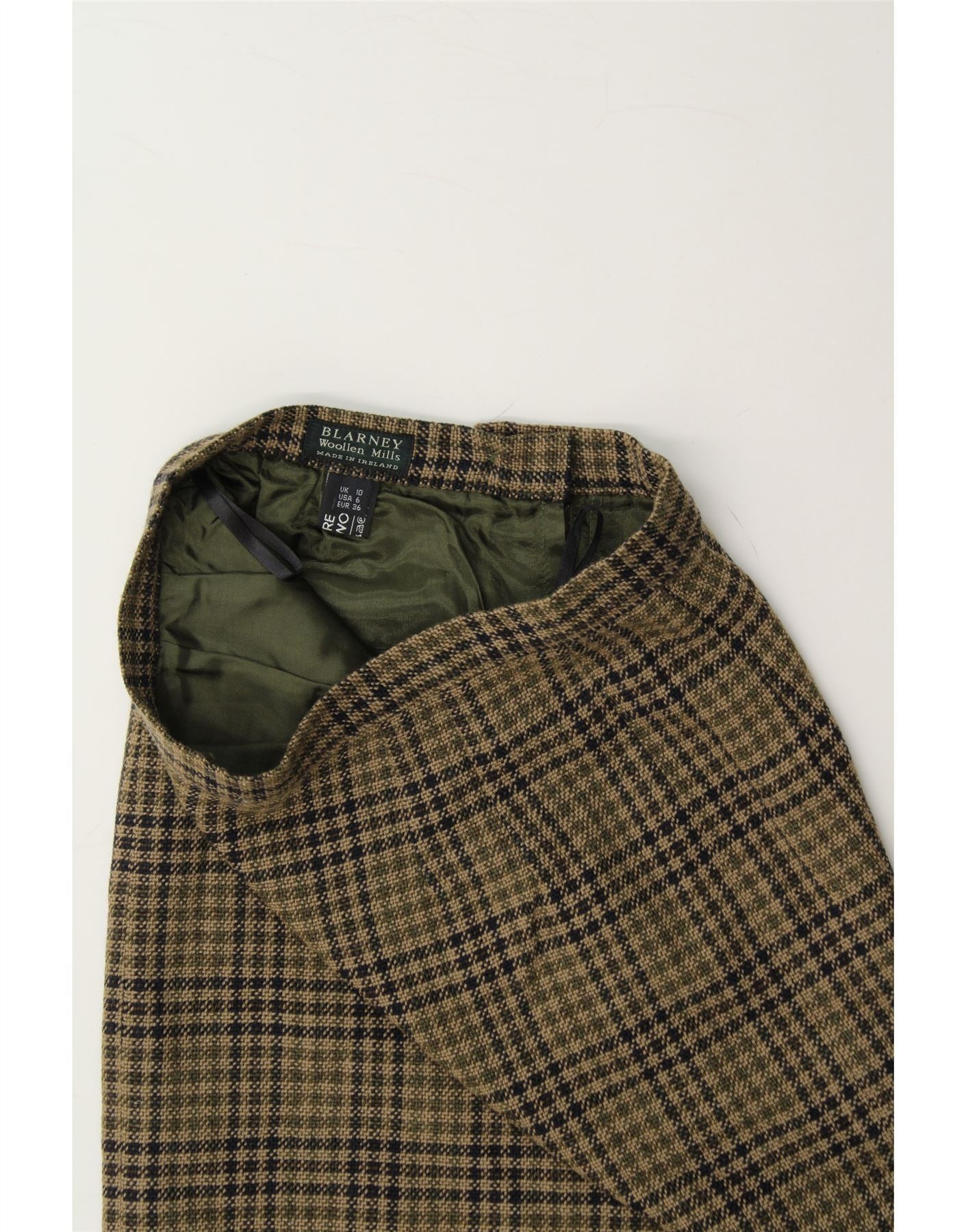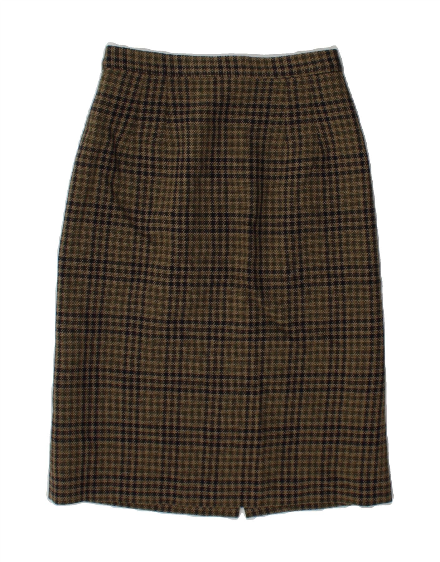 BLARNEY Womens Straight Skirt UK 10 Small W26 Khaki Check New Wool
