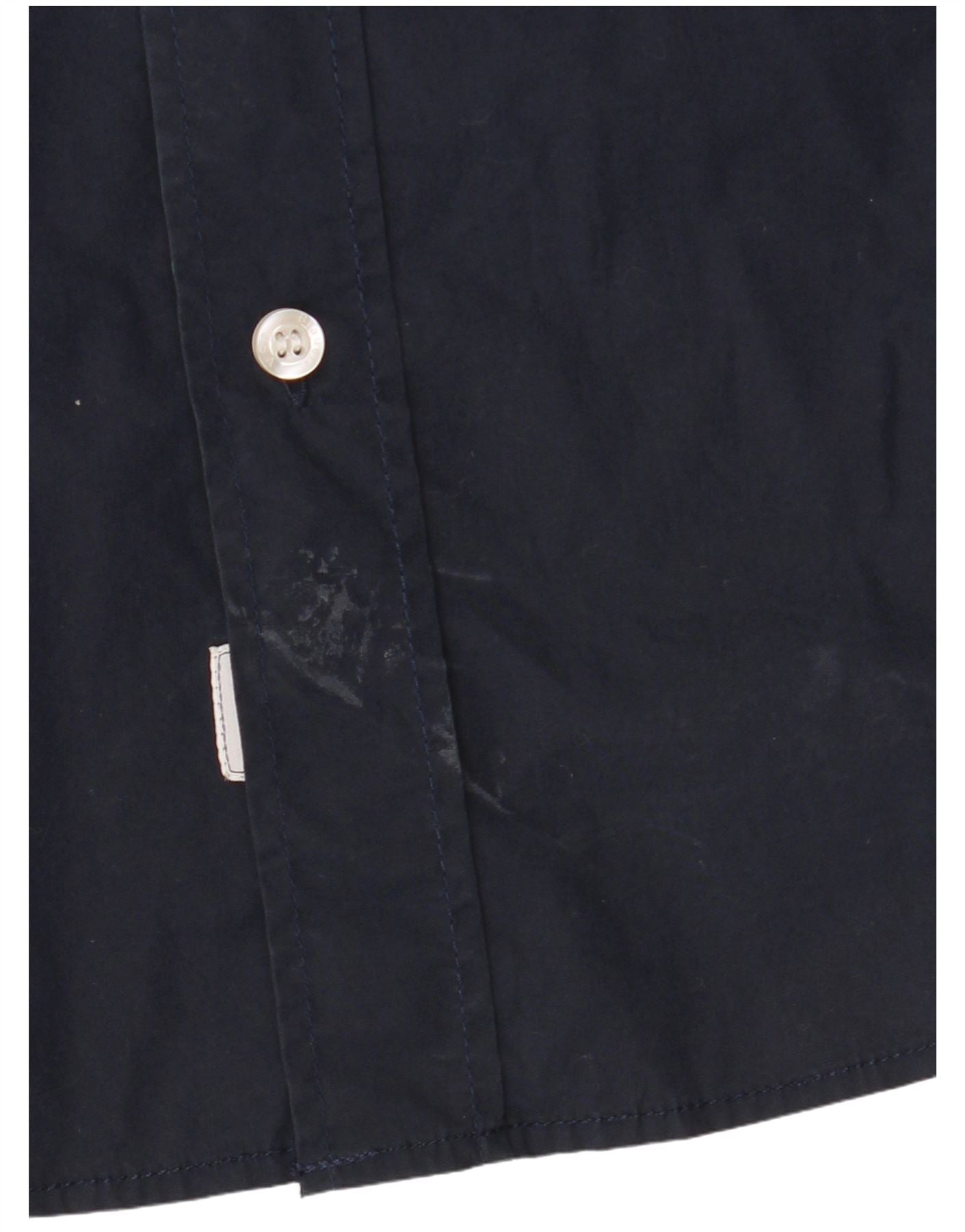 - AI Description: This Blauer mens shirt is crafted from a navy blue cotton blend fabric, offering a smooth yet durable feel. It features a classic collared neckline and long sleeves with buttoned cuffs. The full button-up front and chest pockets add practical utility and style. A regular fit ensures comfortable wear. Tonal buttons complete the refined look.