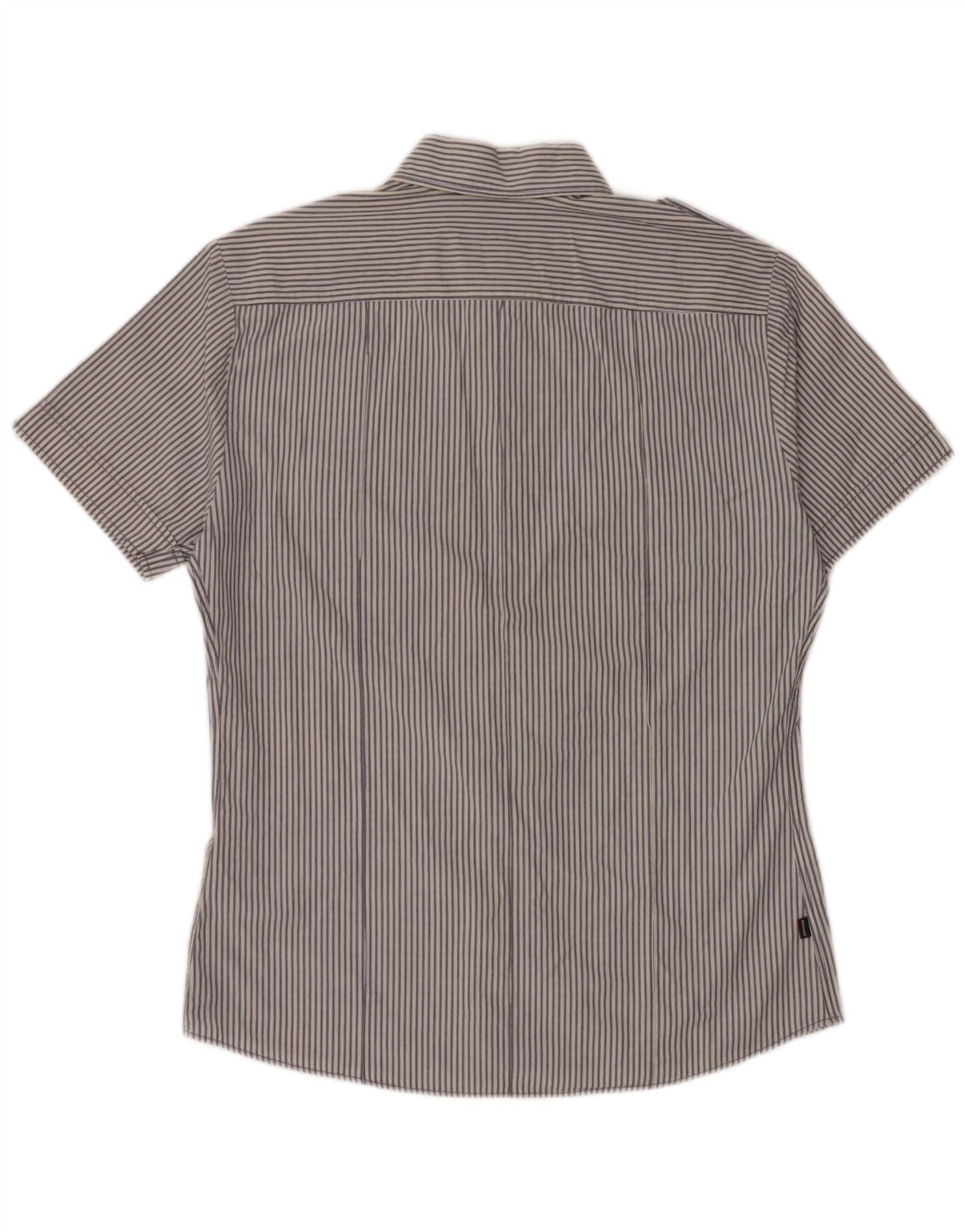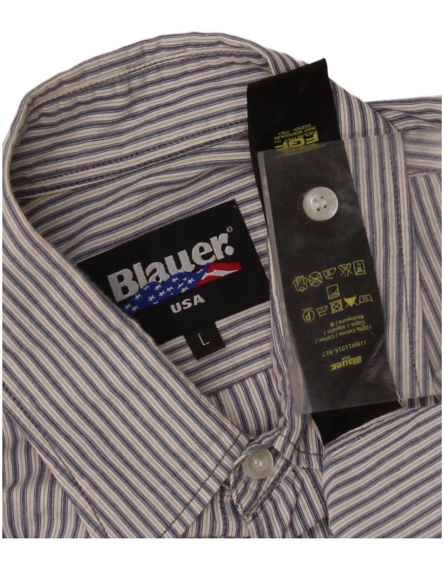 BLAUER Mens Military Short Sleeve Shirt Large Blue Pinstripe Cotton