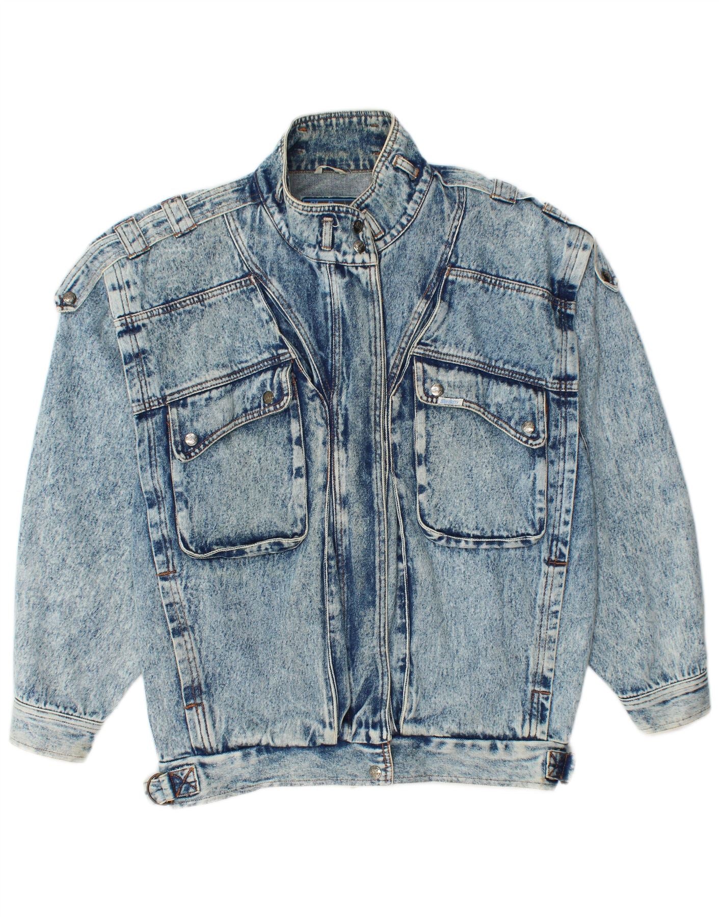 BLUE BERRY Womens Military Oversized Denim Jacket UK 14 Medium Blue Cotton