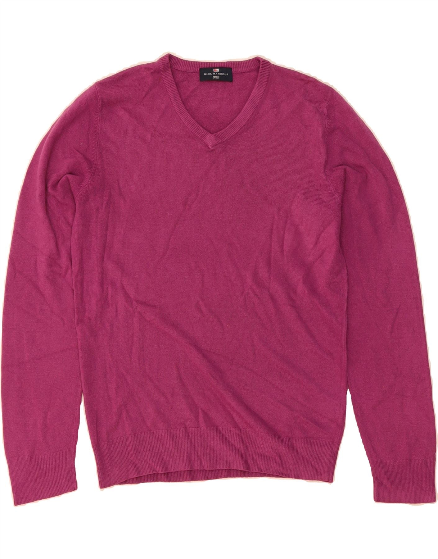 BLUE HARBOUR Mens V-Neck Jumper Sweater Small Purple Acrylic