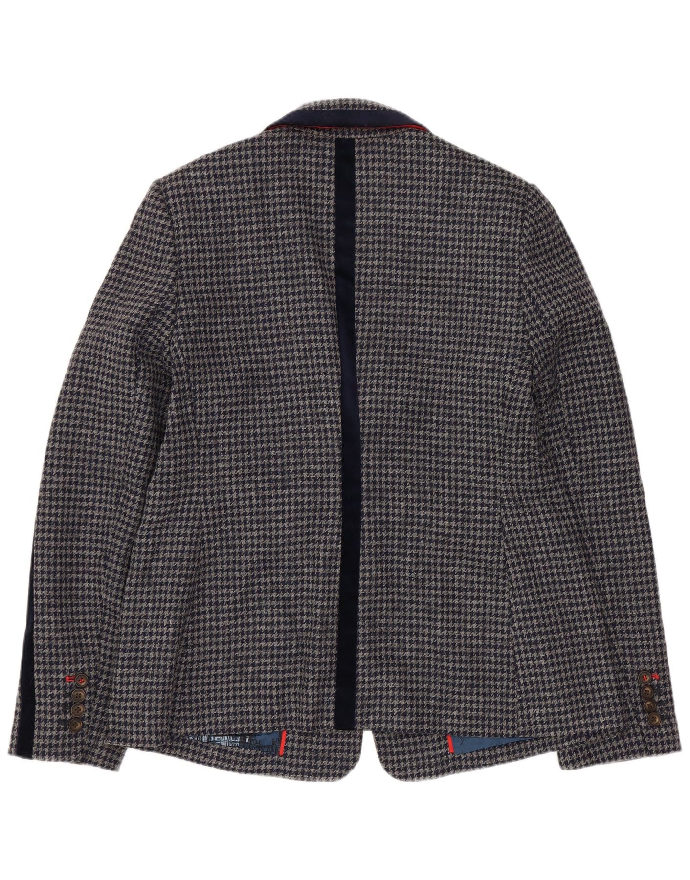 BODEN Womens 1 Button Blazer Jacket UK 14 Large Navy Blue Houndstooth Wool