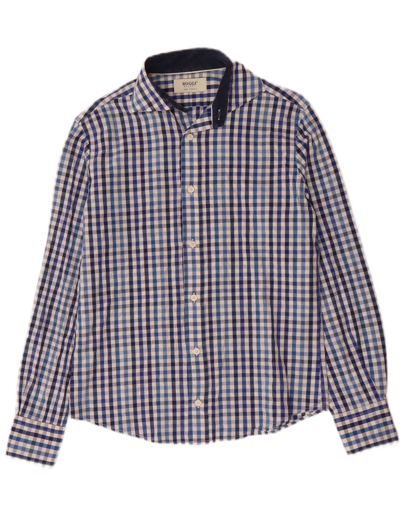 Boggi Mens Milano Shirt Small Blue Gingham Cotton