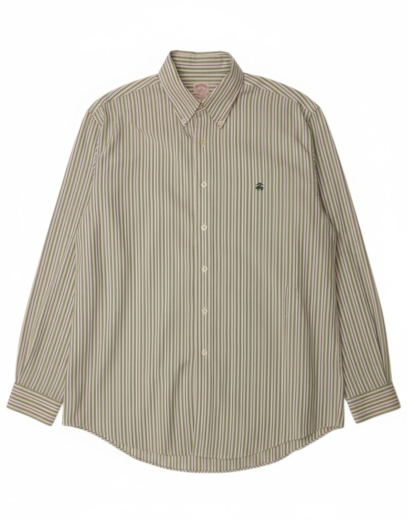 BROOKS BROTHERS Mens 346 Shirt Large Green Striped Cotton