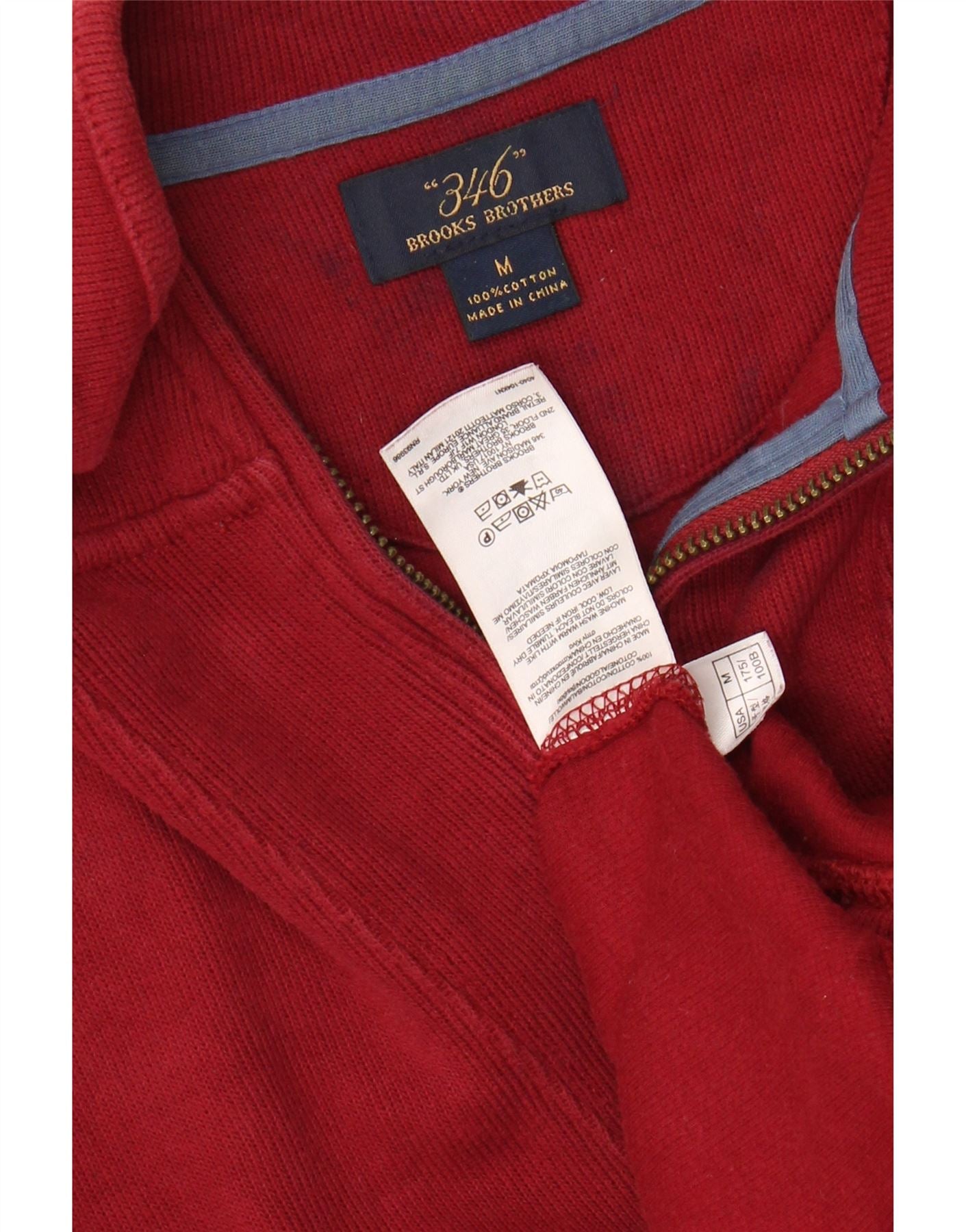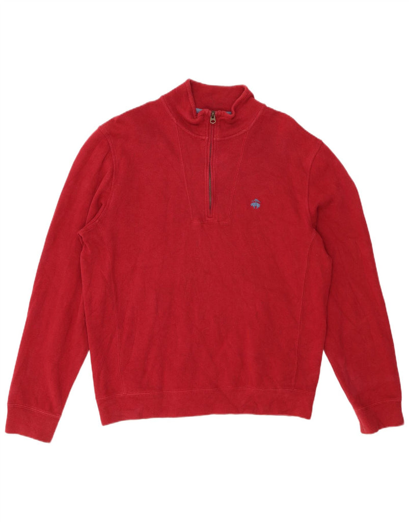 BROOKS BROTHERS Mens 346 Zip Neck Jumper Sweater Medium Red Cotton