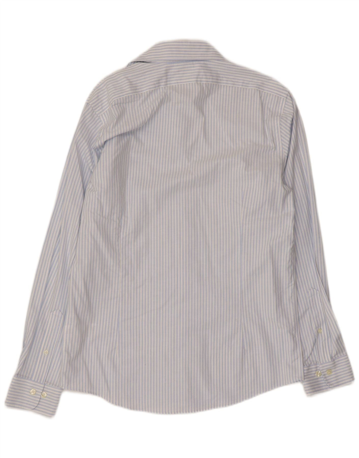 Brooks Brothers Mens Milano Shirt Medium Blue Striped Cotton