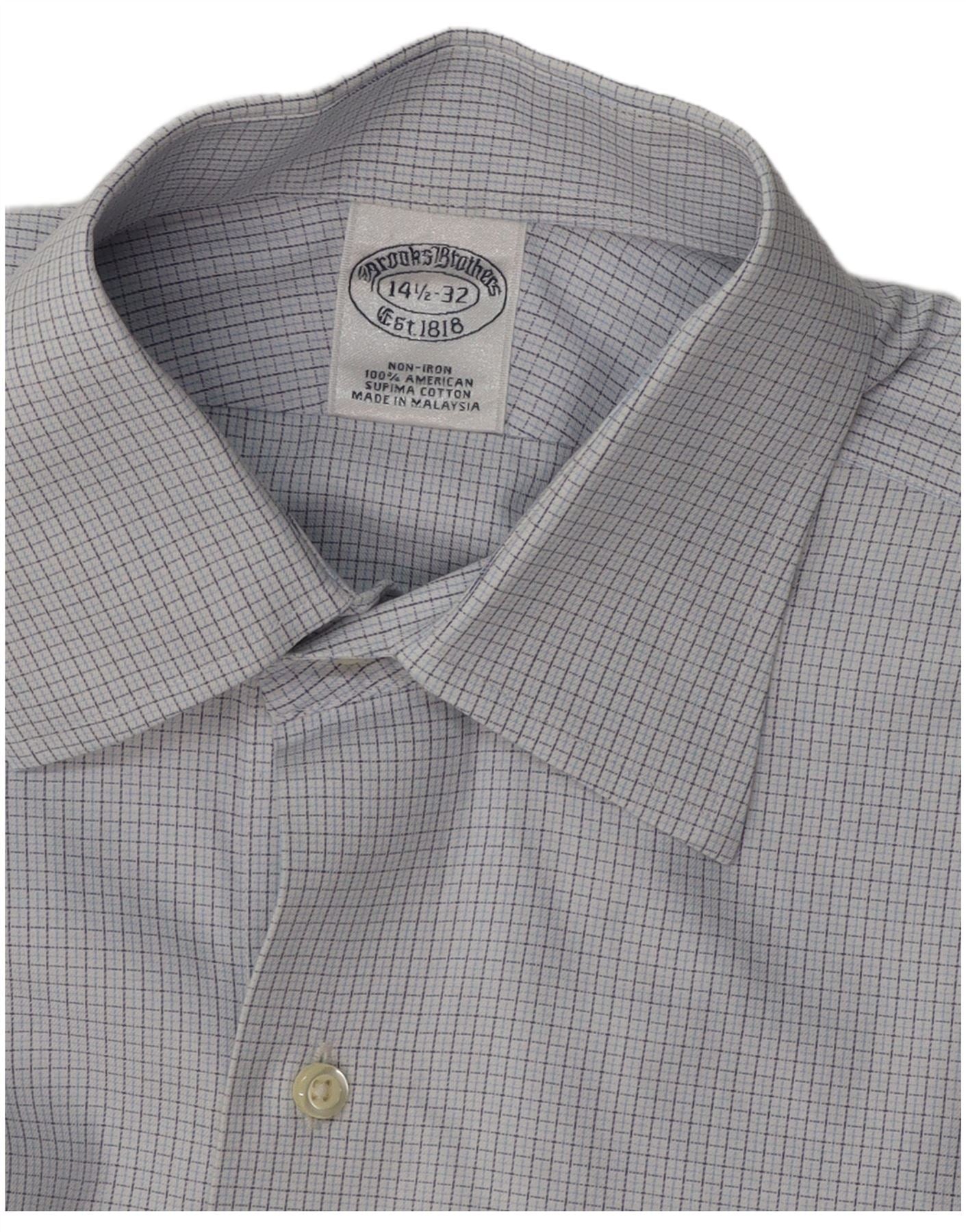 BROOKS BROTHERS Mens Shirt Size 14 1/2 Small Blue Check Cotton