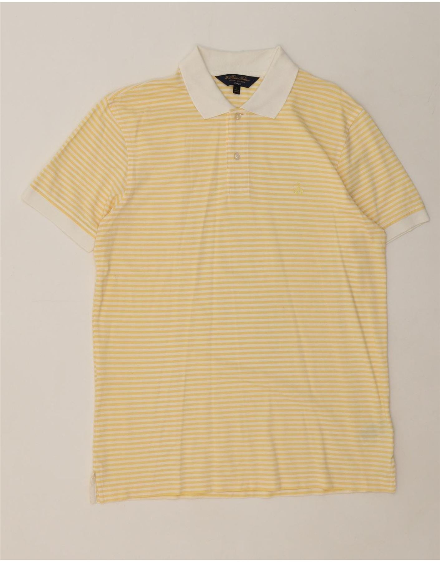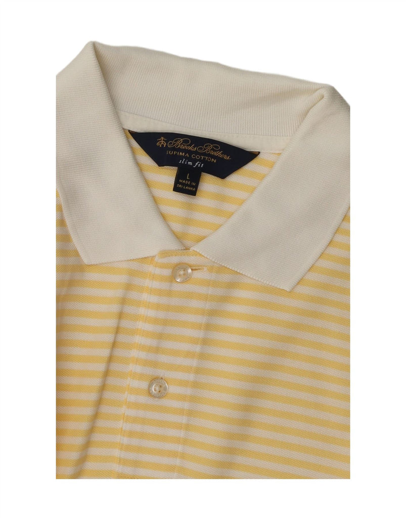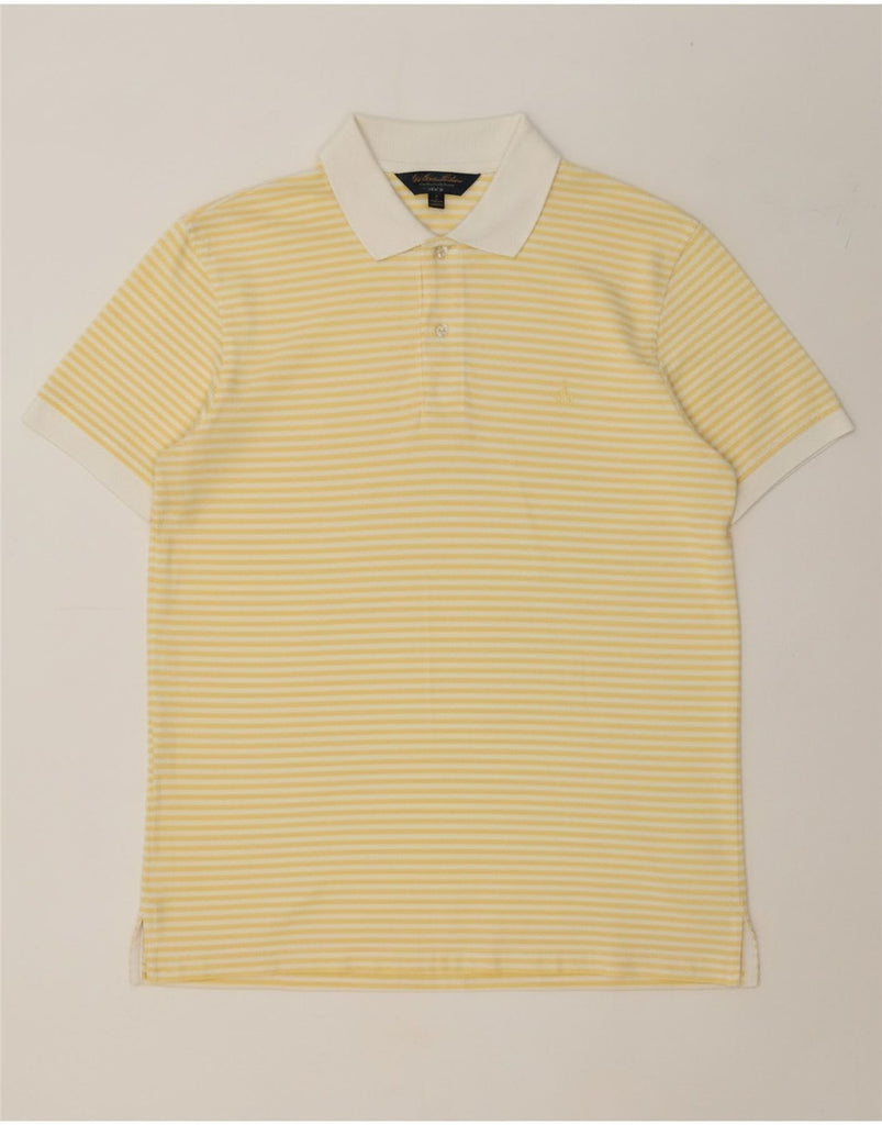 BROOKS BROTHERS Mens Slim Fit Polo Shirt Large Yellow Striped Cotton
