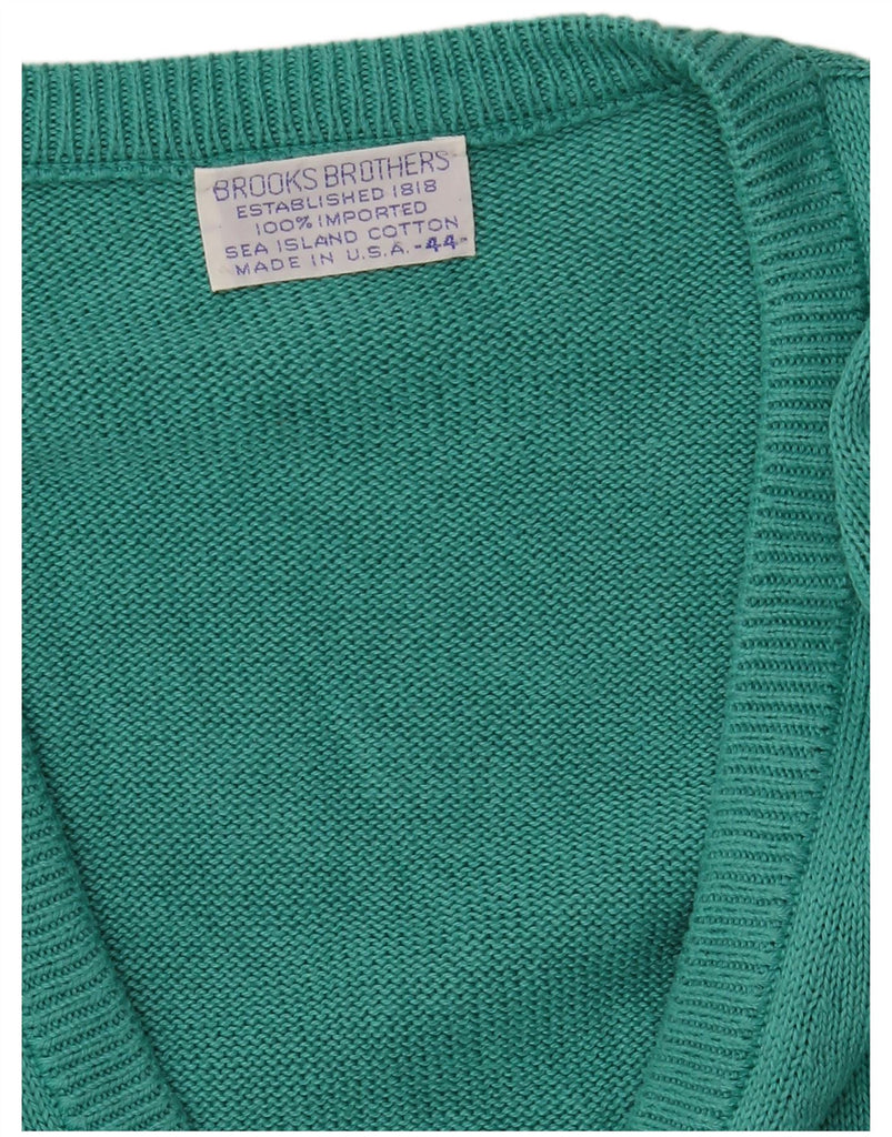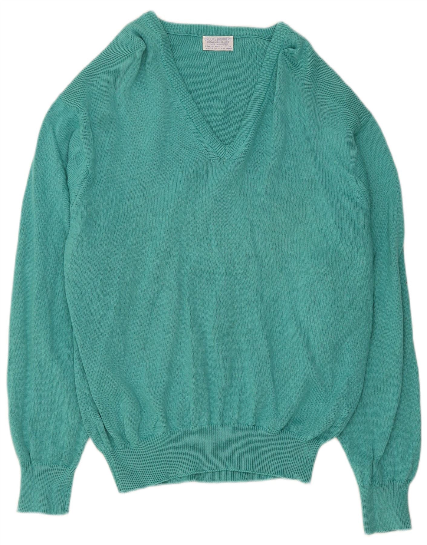 BROOKS BROTHERS Mens V-Neck Jumper Sweater UK 44 XL Green Cotton