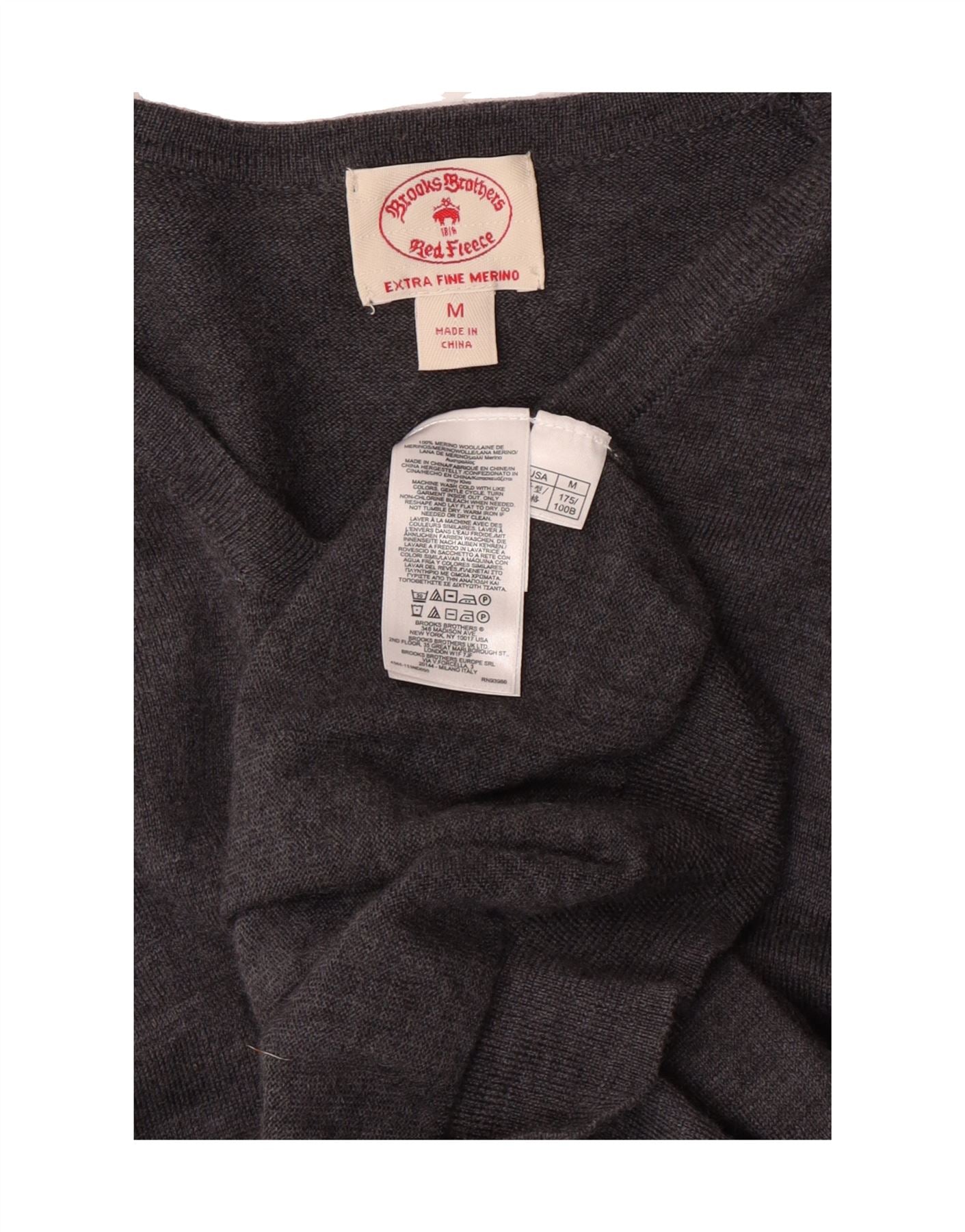 BROOKS BROTHERS Womens V-Neck Jumper Sweater UK 14 Medium Grey Merino Wool