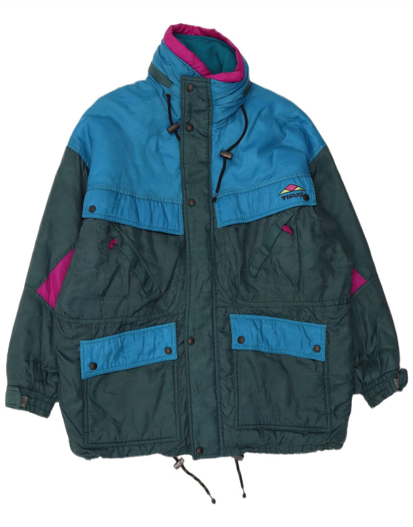 BRUGI Mens Loose Fit Ski Jacket UK 40 Large Green Colourblock Polyamide
