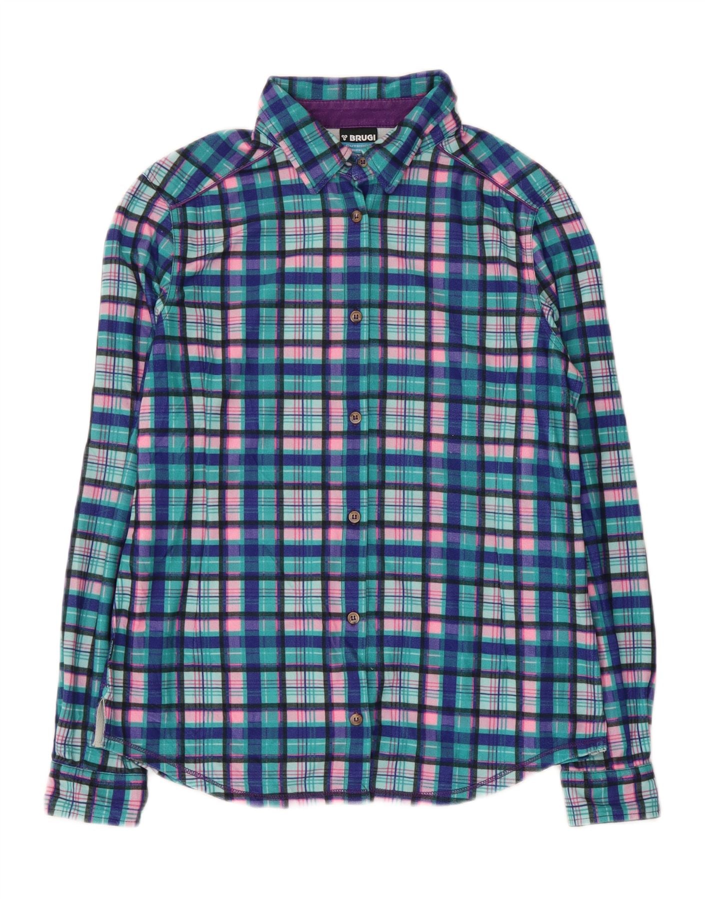 BRUGI Womens Flannel Shirt UK 14 Large Blue Check