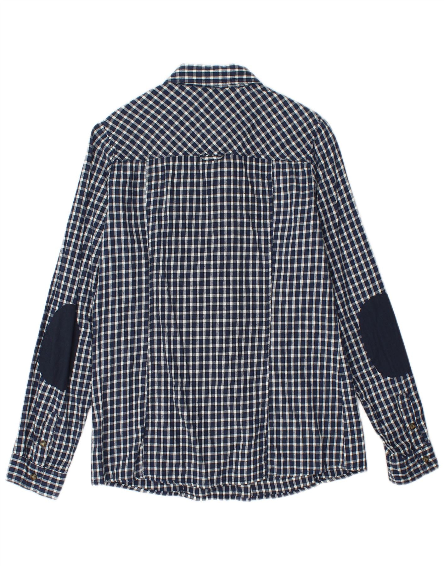 BRUGI Womens Shirt UK 12 Medium Navy Blue Gingham Cotton