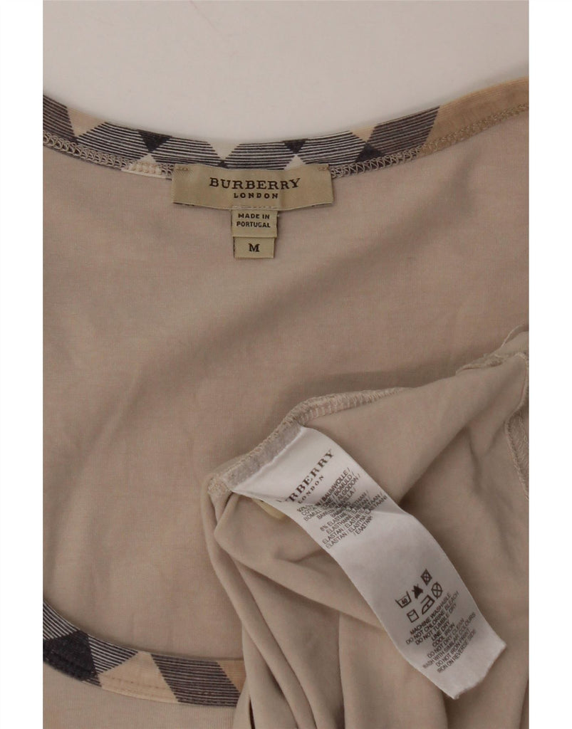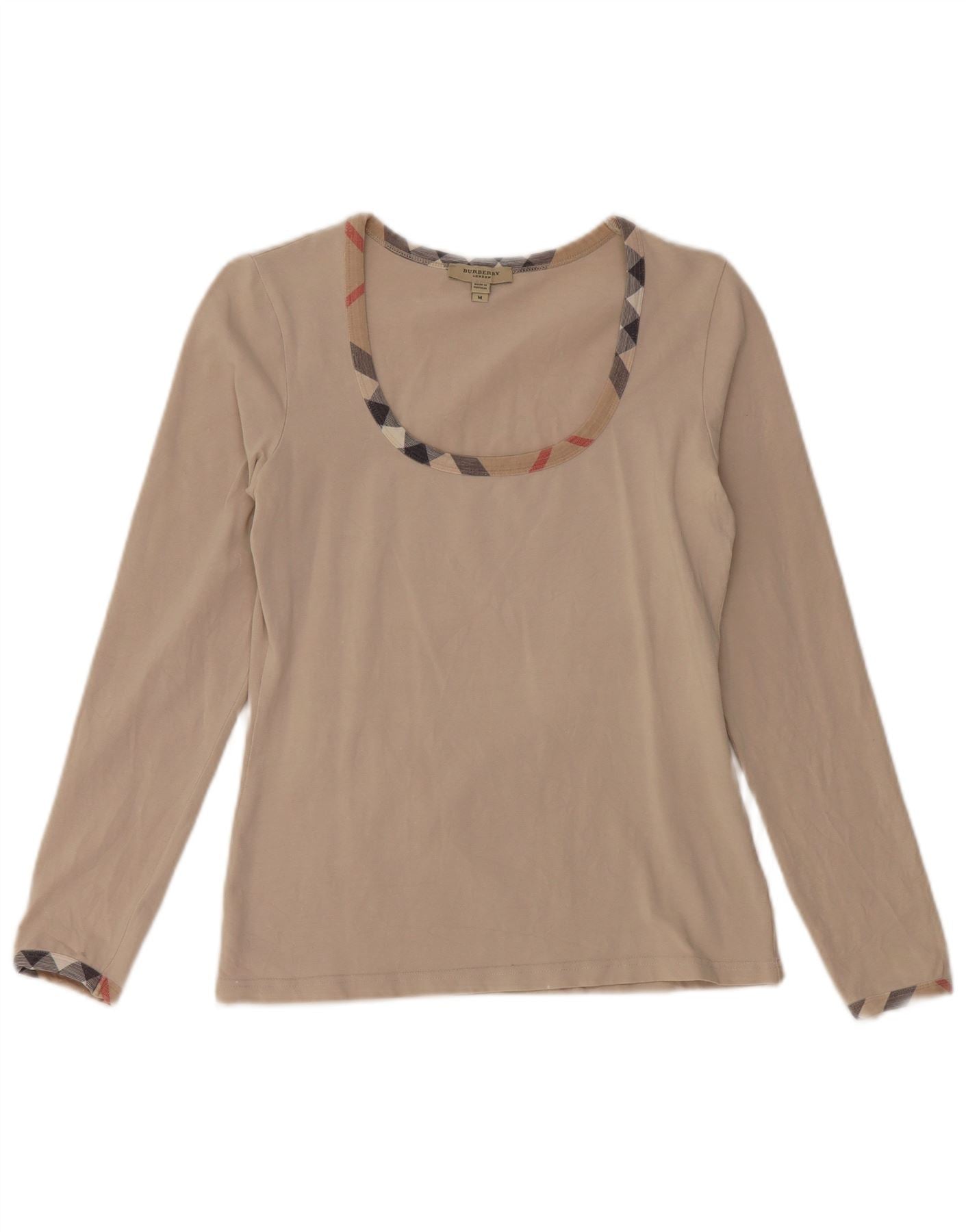 BURBERRY Womens Crop Top Long Sleeve UK 12 Medium Beige Cotton