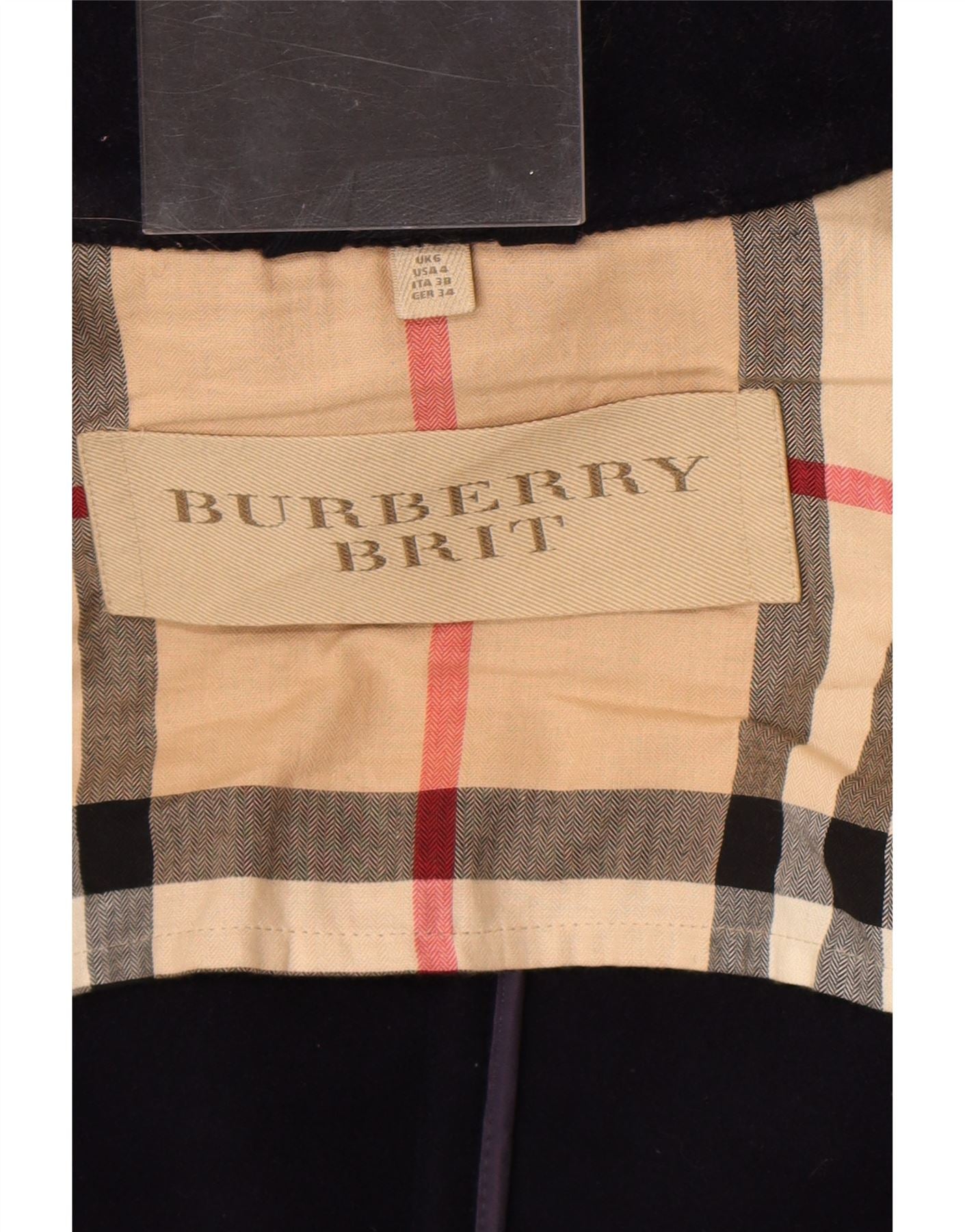 Burberry Womens Oversized Hooded Duffle Coat UK 6 XS Navy Blue Wool Classic