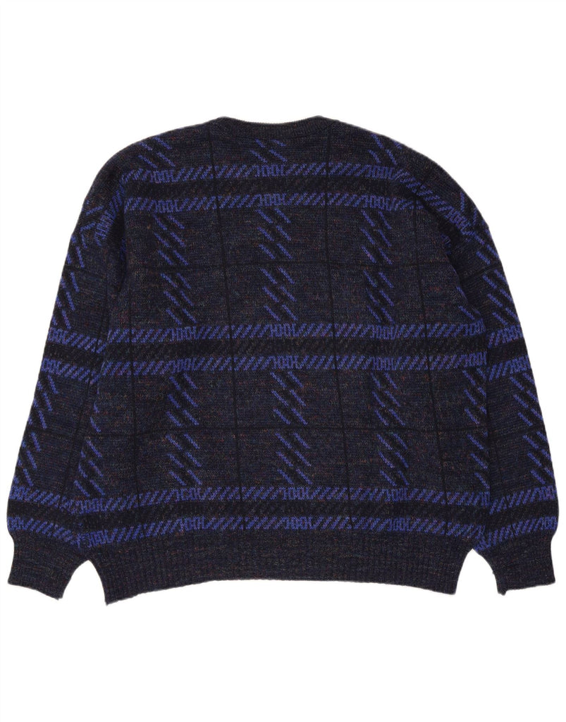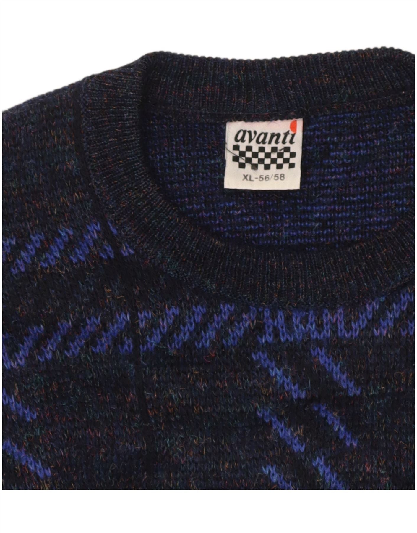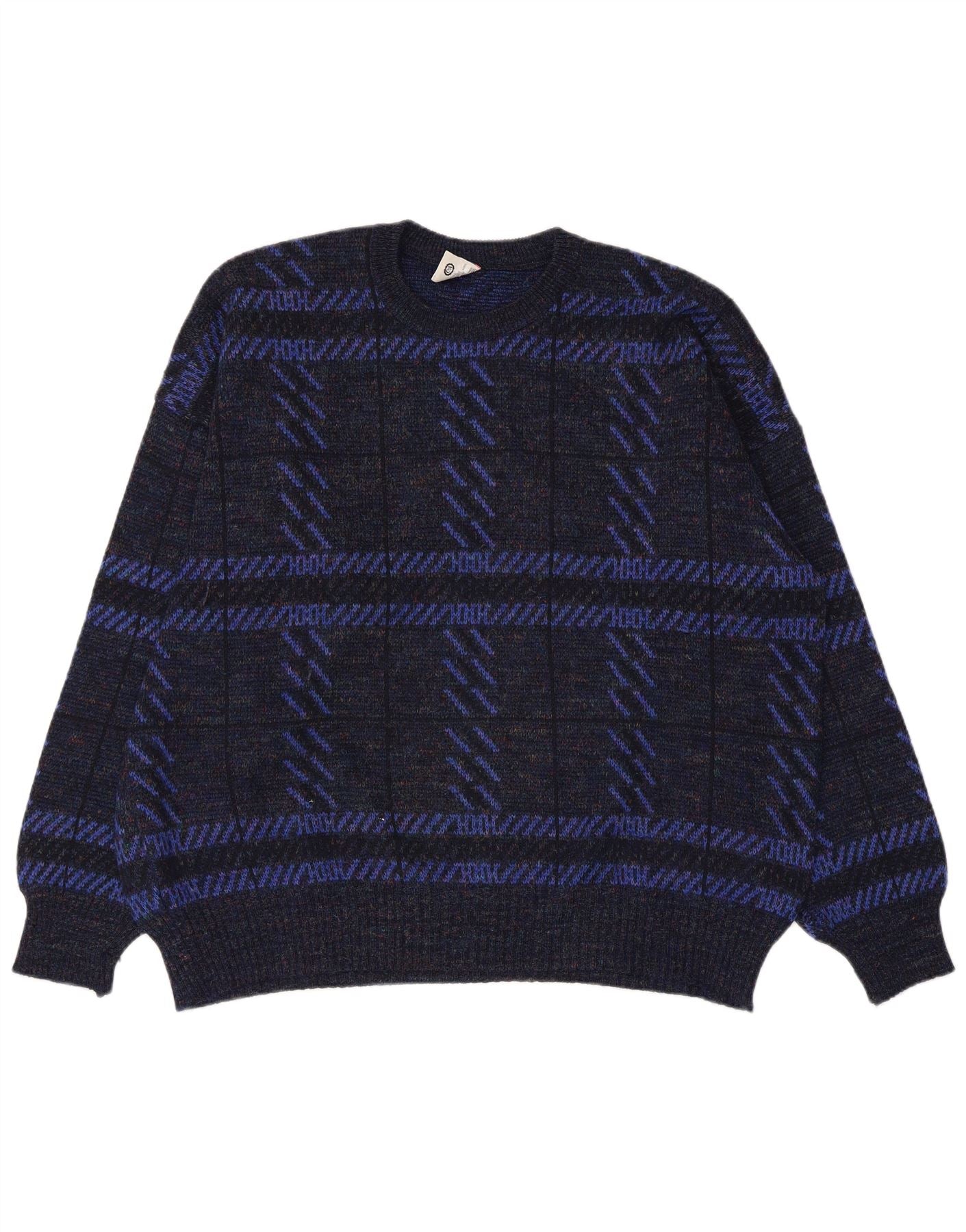 C & A Mens Crew Neck Jumper Sweater IT 56/58 2XL Navy Blue Check Acrylic