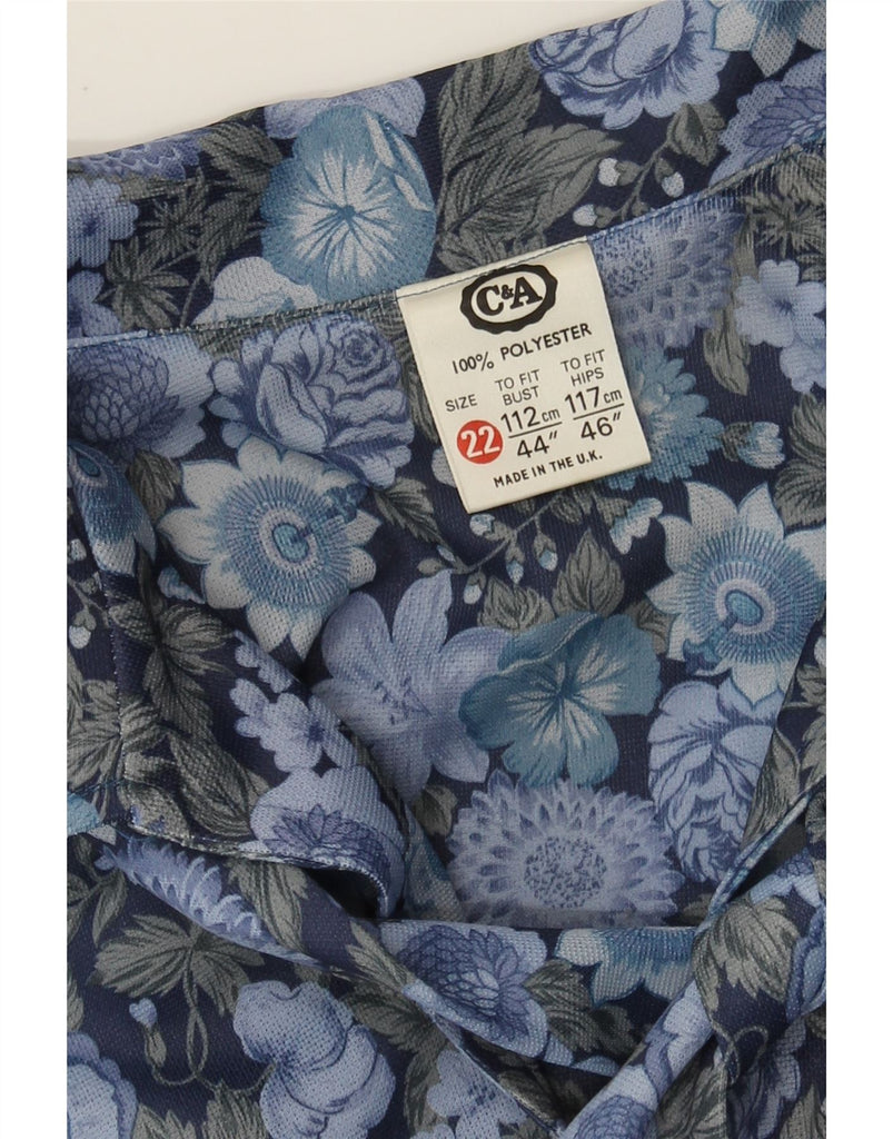 C&A Womens Front Tie A-Line Dress UK 22 3 XL Blue Floral Polyester