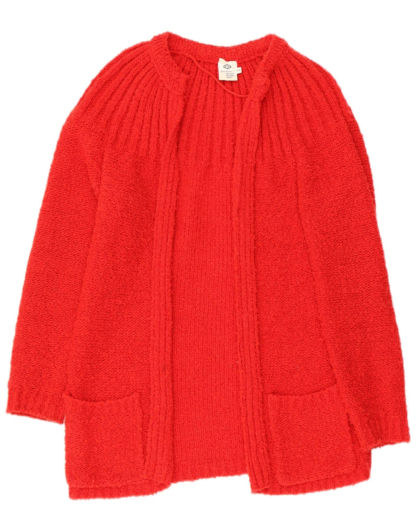 C&A Womens Longline Open Cardigan Sweater EU 38 Medium Red Acrylic